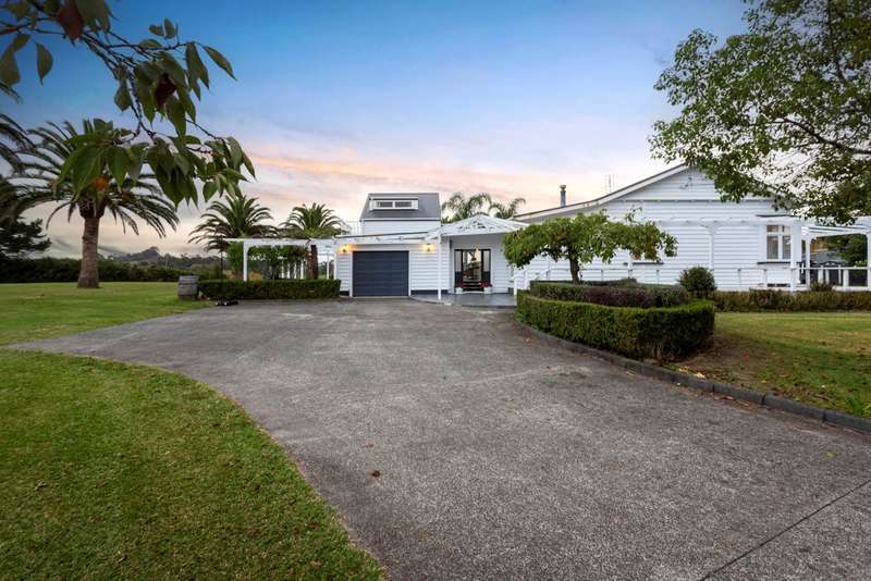 NOTE: IF VIEWING PLEASE BE AWARE THAT SH16 ENTRY INTO MATUA RD IS TEMPORARILY CLOSED. ACCESS IS VIA TAPU OR ORAHA RD. For a long time, Matua Road has been considered a premium address for lifestyle property in Kumeu/Huapai. This land is strategically positioned with parklike grounds and waiting for someone with vision to take it to the next level. Having been cherished by the same family for nearly 50 years, the home is a spacious 5+ bedroom bungalow and sits on prime land with sweeping rural views from its elevated position. Renovate or re-develop, the option is yours. From there sit back and enjoy your lifestyle as you watch your investment grow and grow. The home features open-plan living and dining room, along with a distinct formal lounge, ideal for entertaining guests. Keep warm during the winter season with a substantial wood burner while soaking in the atmosphere provided by the vintage chandeliers. There are two tiled bathrooms for added convenience and practicality. Additionally, upstairs, you'll find a separate family room or sixth bedroom offering stunning rural views and a private outdoor deck. With excellent road frontage and multiple vehicle entry points, this up-sized property is big by any definition. There are two large sheds—one close to the house, and another further down the property which is an open 2-bay shed. The open-bay shed features an over-height entryway that is perfect for a wide range of contractors or could potentially be converted into stables. Both sheds have 3-phase power and a good high-pressure water supply. Parking is plentiful and the driveways are wide as they have been used to access trucks for many years. As you continue down the property a small bridge leads to another paddock, perfect for grazing. Don't miss your chance to secure your slice of country paradise with amazing potential. Contact me today to arrange a private viewing.