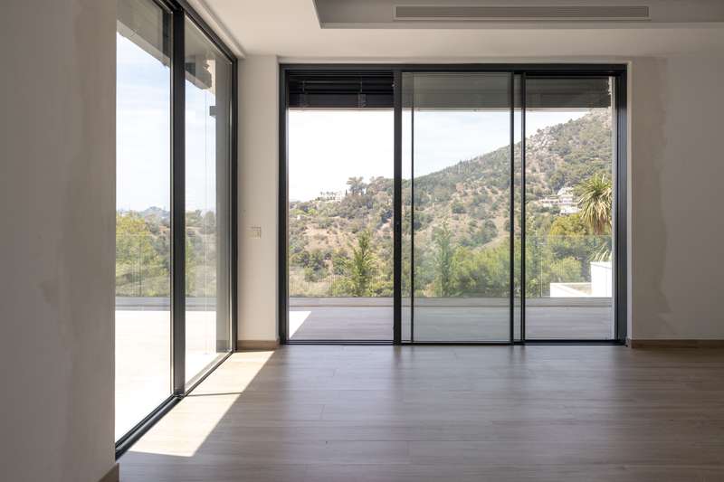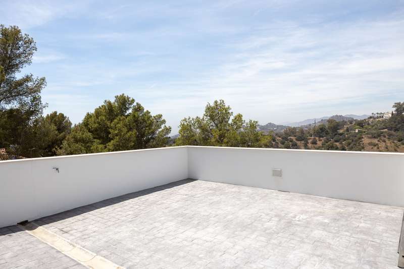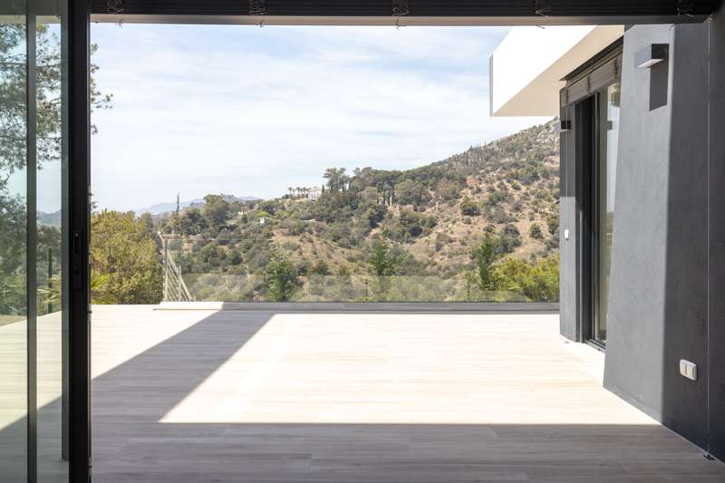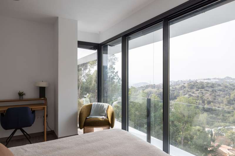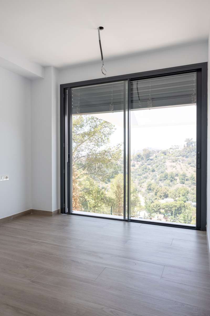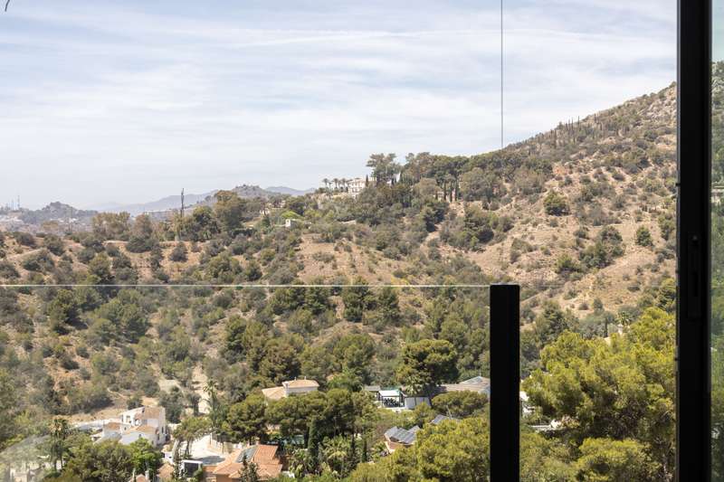 This newly built modern villa in Pinares de San Anton, Malaga, offers a seamless blend of comfort and sophistication, with breathtaking views of the mountains, sea, and city. Ideally located near top schools, the beach, essential amenities, and the airport, it provides both luxury and convenience. The neighborhood boasts excellent transportation links, a nearby tennis club, and 24/7 security for peace of mind. The villa is designed with sustainability in mind, featuring the pre-installation for photovoltaic panels, electric Venetian blinds, a pre-installed charging station for electric cars and a low-maintenance garden. Entering from the parking area, which includes a storage space, a staircase leads to the first floor, featuring three well-appointed bedrooms. The master bedroom comes with an en-suite bathroom, while the other two bedrooms share a bathroom. All bedrooms have large west-facing windows, offering stunning views. The ground floor boasts a contemporary kitchen with a din