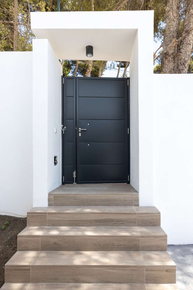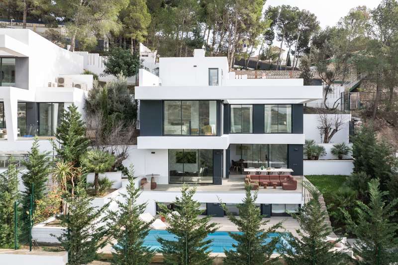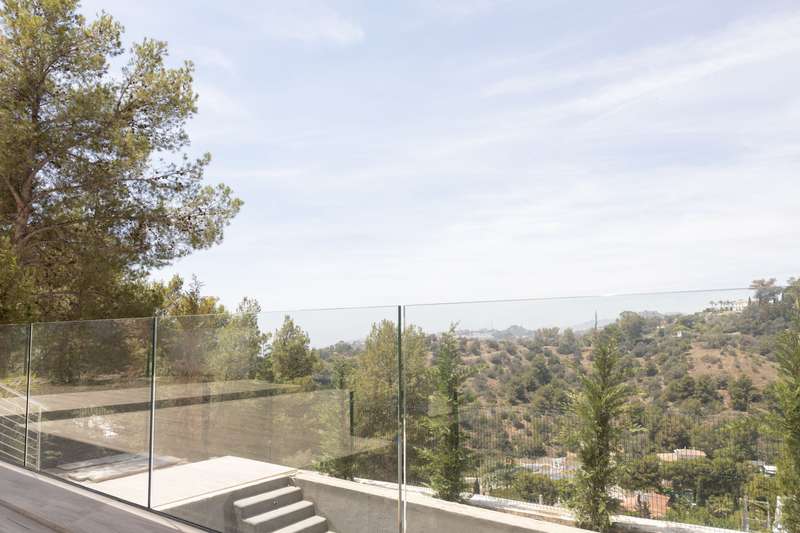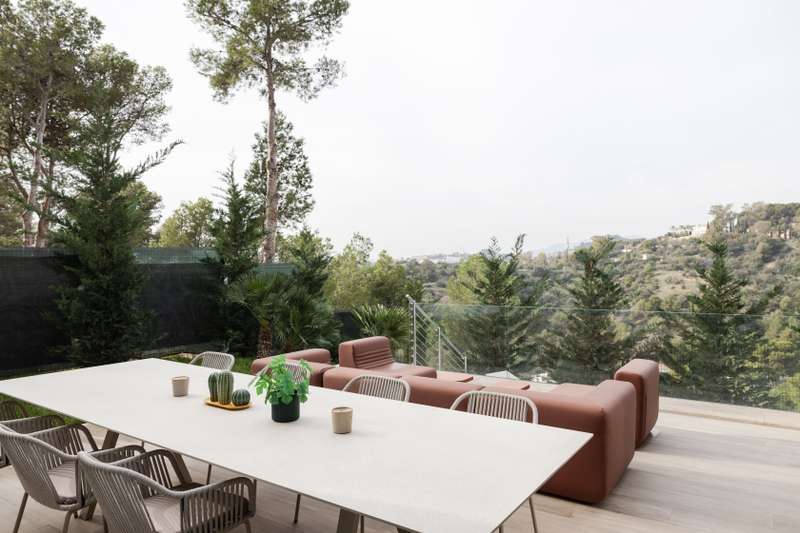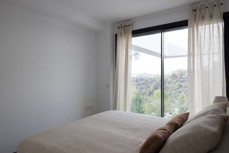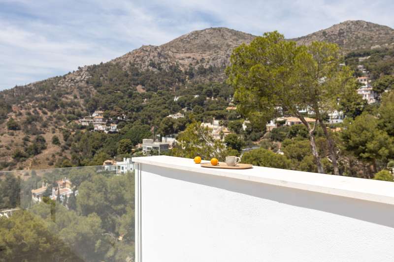 This newly built modern villa in Pinares de San Anton, Malaga, offers a seamless blend of comfort and sophistication, with breathtaking views of the mountains, sea, and city. Ideally located near top schools, the beach, essential amenities, and the airport, it provides both luxury and convenience. The neighborhood boasts excellent transportation links, a nearby tennis club, and 24/7 security for peace of mind. The villa is designed with sustainability in mind, featuring the pre-installation for photovoltaic panels, electric Venetian blinds, a pre-installed charging station for electric cars and a low-maintenance garden. Entering from the parking area, which includes a storage space, a staircase leads to the first floor, featuring three well-appointed bedrooms. The master bedroom comes with an en-suite bathroom, while the other two bedrooms share a bathroom. All bedrooms have large west-facing windows, offering stunning views. The ground floor boasts a contemporary kitchen with a din