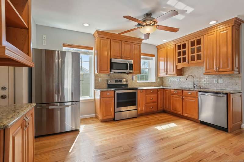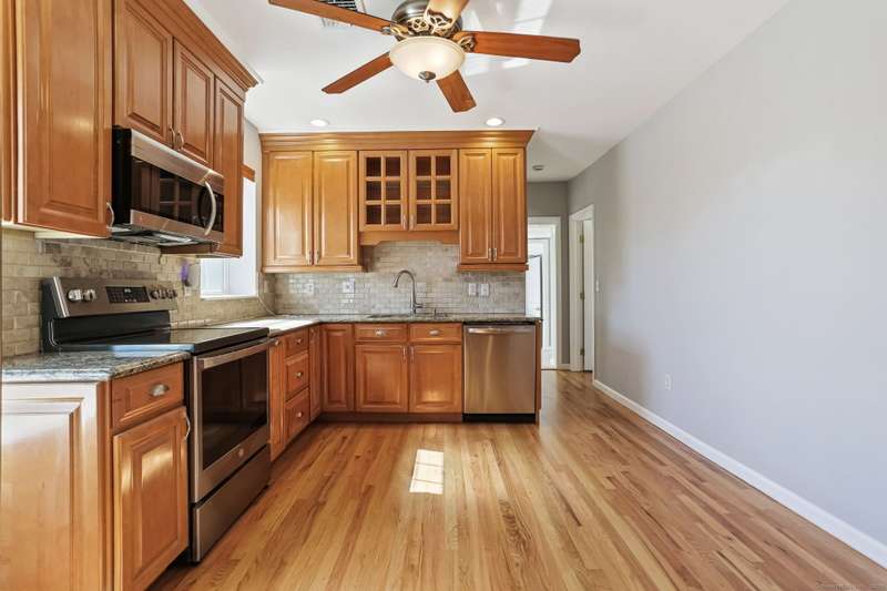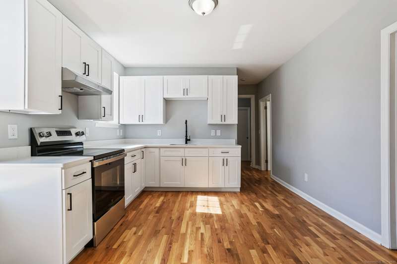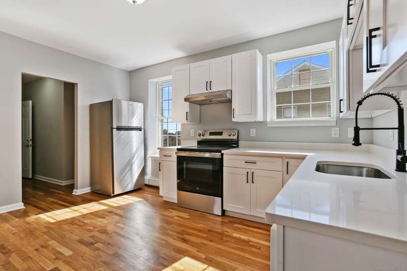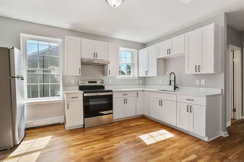Don't miss this exceptional two-family home located in the desirable North End of Bridgeport! Both units have been thoughtfully refreshed, offering a move-in ready experience for homeowners or tenants alike. The first floor includes five rooms with two bedrooms and one full bath, a spacious laundry room , a newly renovated white kitchen with stainless steel appliances, gleaming hardwood floors throughout, and a freshly painted interior. The second floor has been completely painted and rejuvenated, making it move-in ready." featuring three bedrooms, two full baths, central air conditioning, solar panels for energy efficiency, newer windows, and a-new partial roof. The exterior has been recently painted to enhance the home's curb appeal. A newly paved driveway offers ample parking, accommodating 4 or more cars. The outdoor space is a blank canvas, ready for your personal touch and creativity. Ideal for entertaining or relaxing. Conveniently located near St. Vincent's Hospital and offeri