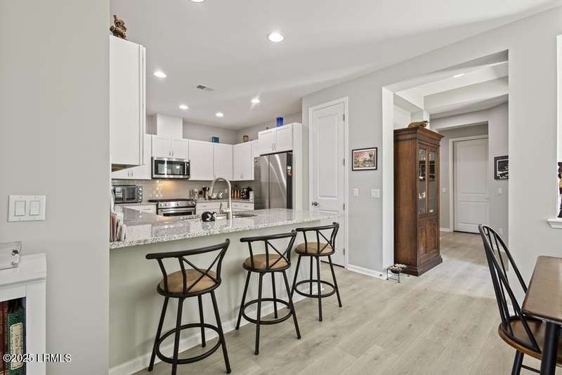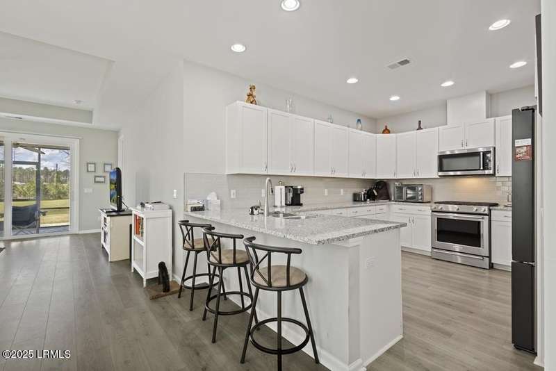 Spectacular view! Fabulous Jamaica villa with a 3.75 ASSUMABLE VA MORTGAGE on a Premier Lot, it doesn't get any better than this, why wait to build! LVP flooring throughout this well-maintained home, w 2 Beds, 2 Baths & a Flex Room/Den/Office. Primary Bed w Lagoon view, Primary Bath w Double Vanity & tiled Shower, good bed separation. Oversized Eat-in Kitchen w tons of cabs (soft close drawers & doors), Granite Counters, SS Apps, Pantry. Laundry w Whirlpool Washer & Dryer on pedestals. Updated fans & light fixtures, Screened Porch & paver extension. 2 Car Garage w Epoxy floor. Don't wait, Move in ready! See Matterport 3D Video Tour