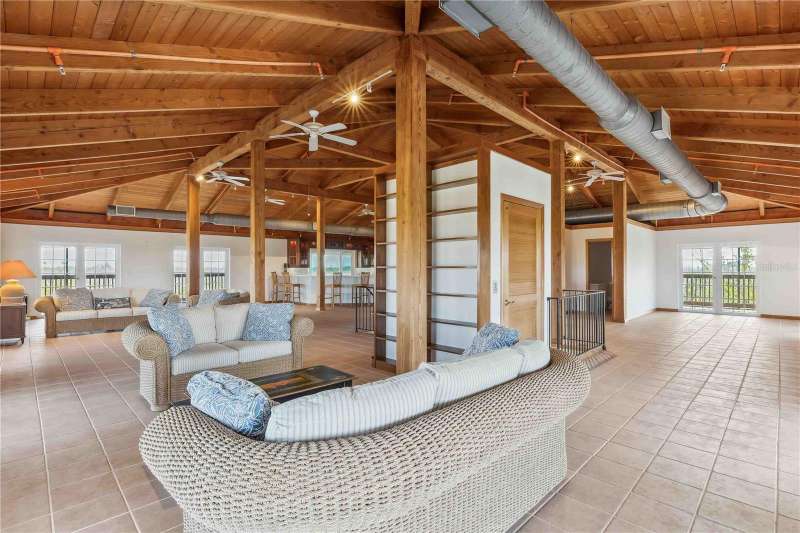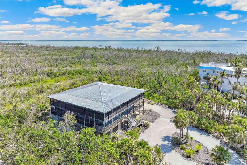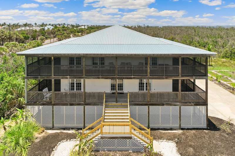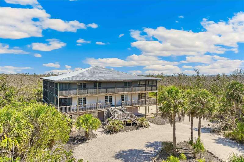 One or more photo(s) has been virtually staged. Custom Retreat Bordering Nature Preserve Positioned on 1.35 acres at the end of a quiet cul-de-sac and backing to a serene nature preserve, this custom-built home blends warm, natural elements with thoughtful design. Soaring Douglas Fir vaulted ceilings crown the expansive great room, where rich cherry cabinetry, Viking and Sub-Zero appliances, and an oversized kitchen island that seats eight create a comfortable space for gathering. The home’s two main levels feature 10-foot-wide, fully screened wraparound decks—ideal for enjoying the peaceful, private setting. Multiple sets of double French doors create seamless indoor-outdoor flow from nearly every room. With four spacious bedrooms, three full bathrooms, and an additional office or fifth bedroom with a half bath, the layout is both flexible and functional. The ground floor, with 4 car garage and workshop, is accessible—like all three levels—via a private elevator. Additional updates include a new metal roof (July 2021), fresh carpeting, and two recently replaced air conditioning units. This home offers a rare combination of craftsmanship, privacy, and modern comfort—perfect for relaxed island living. Some images have been virtually staged.