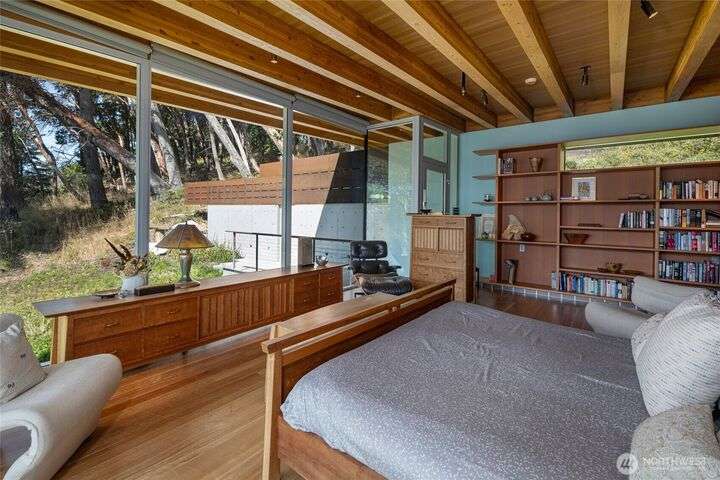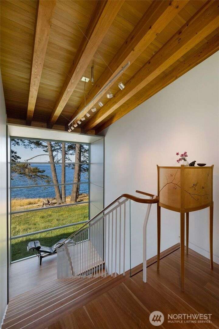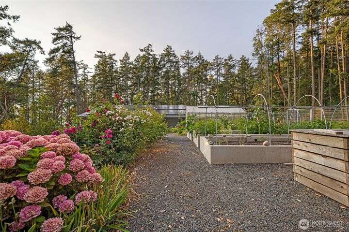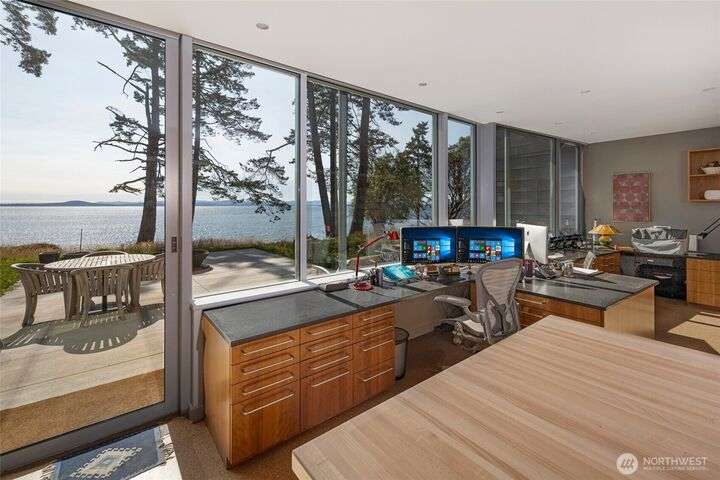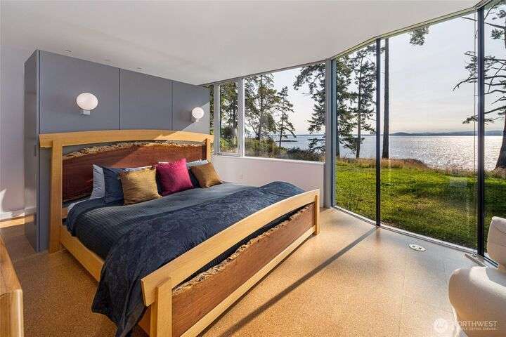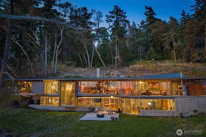 A rare architectural masterpiece on San Juan Island's coveted west side, this iconic Bohlin Cywinski Jackson-designed estate showcases intentional design and refined craftsmanship across nearly 10,000 sf of conditioned space. Privately sited on 6 acres with 400' of waterfront, the recently completed residence blends soaring spaces, floor-to-ceiling windows, and rich natural materials for a grounded sense of luxury. A chef's kitchen, elegant great room, and serene primary suite anchor the main level, while below offers guests quarters, a wine cellar, and hobby space. The estate includes a workshop/garage, a fully equipped greenhouse, and fenced gardens. Enjoy views of Haro Strait, the Olympics, and visits from whales and wildlife.