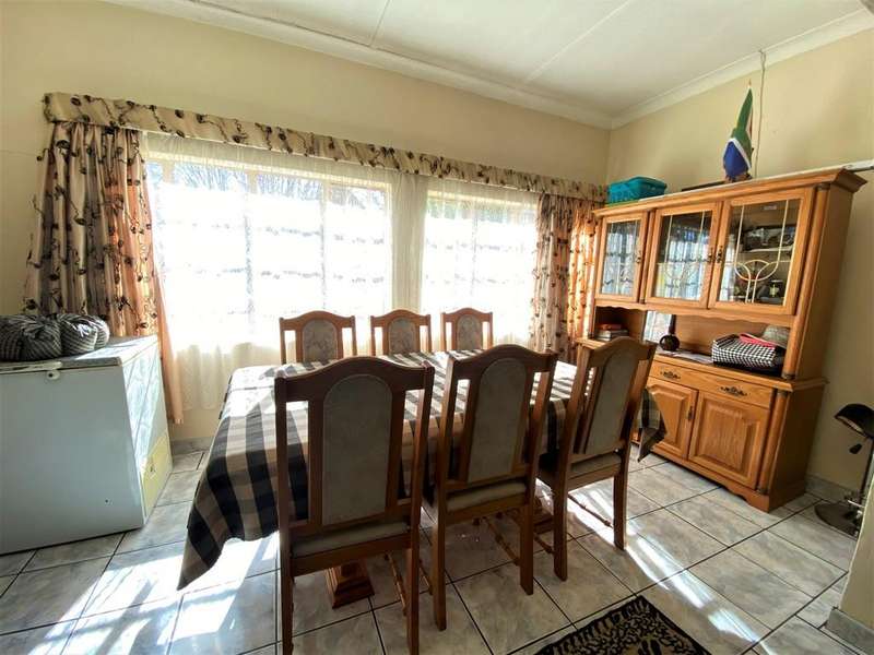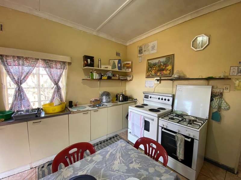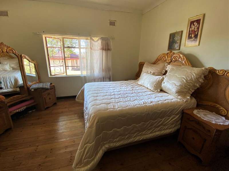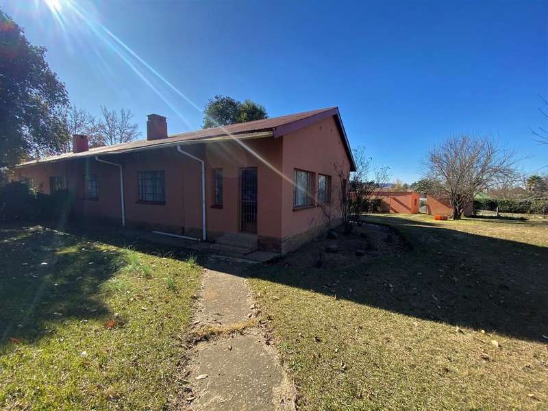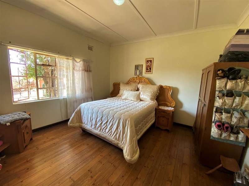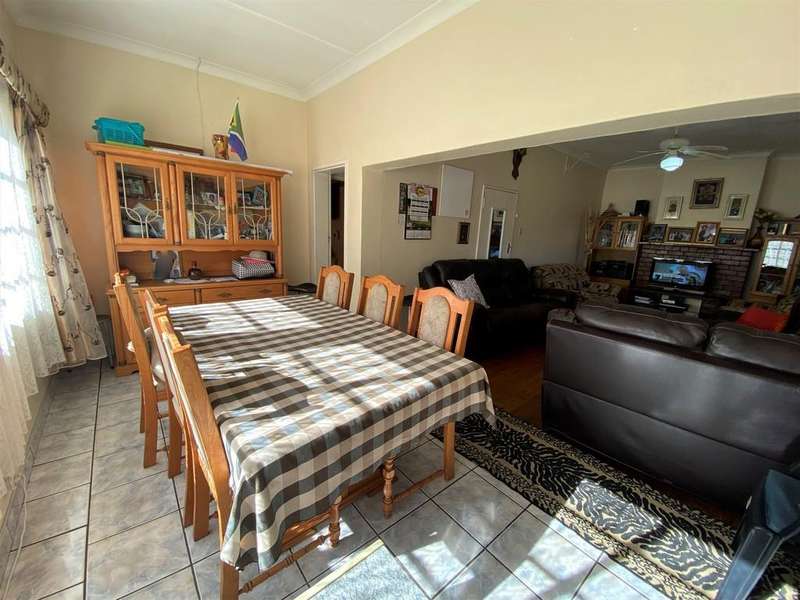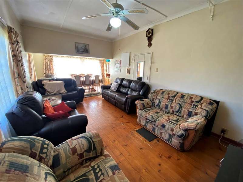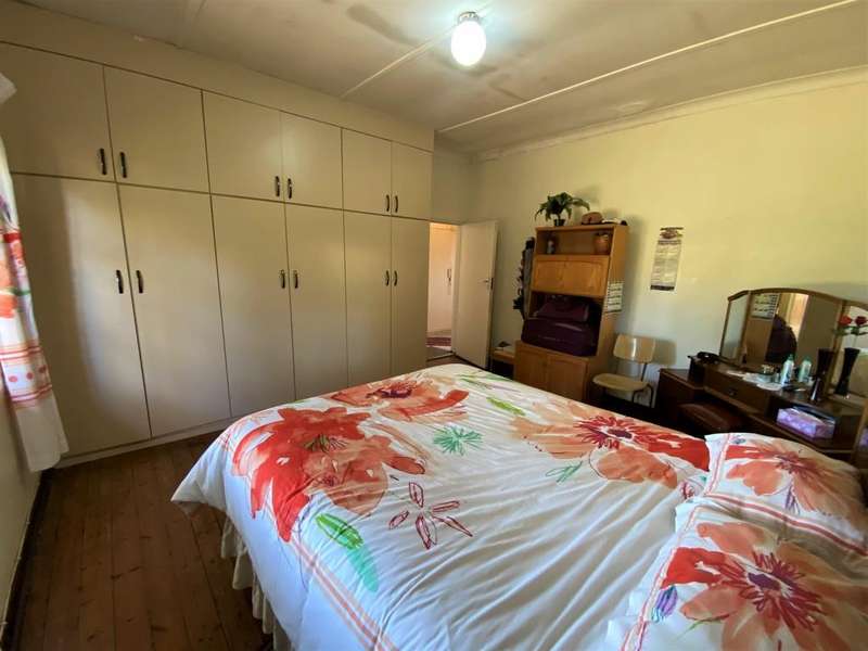 3 houses on a large property - Sole Mandate. The large corner yard has plenty of space for more development and is ideally situated close to the shops and the center of town. The main house is neat inside with wooden floors and has 3 spacious bedrooms, a neatly tiled bathroom and an open plan lounge and dining room with a fire place. The kitchen has built in cupboards and is fitted with a under counter oven and hob. The second house is an exact copy of the main house and need some tlc inside. The third house has 3 bedrooms, an open plan lounge/dining area and a very neatly tiled bathroom. There are 2 garages and 3 carports and ample open parking space. The outbuilding has two rooms with a toilet and shower. Great opportunity for developers and investors.