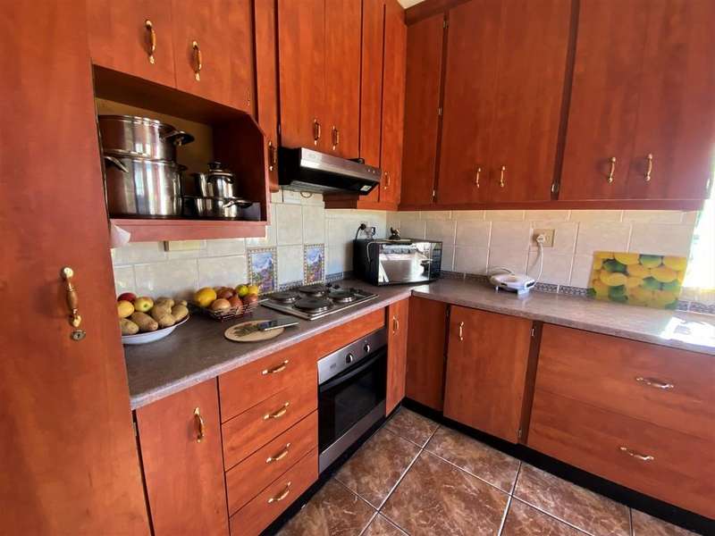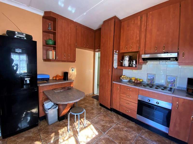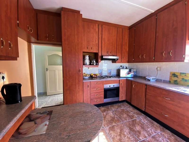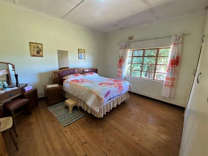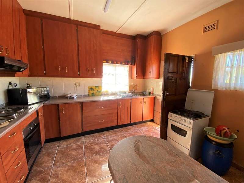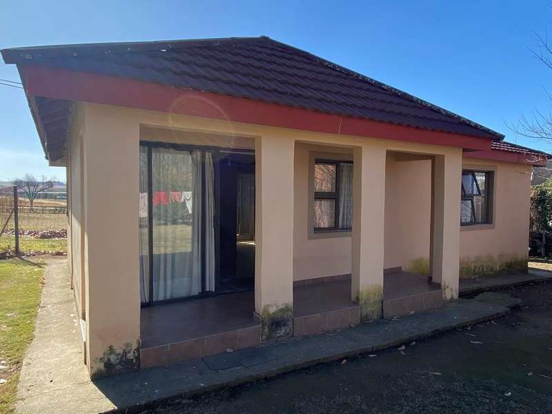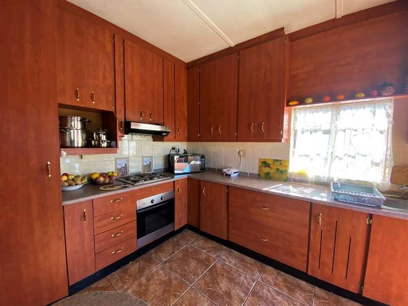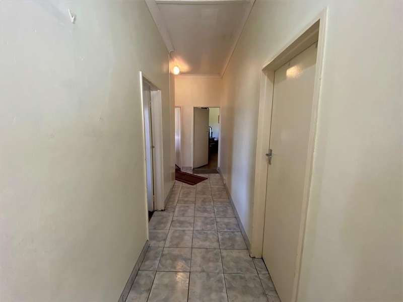 3 houses on a large property - Sole Mandate. The large corner yard has plenty of space for more development and is ideally situated close to the shops and the center of town. The main house is neat inside with wooden floors and has 3 spacious bedrooms, a neatly tiled bathroom and an open plan lounge and dining room with a fire place. The kitchen has built in cupboards and is fitted with a under counter oven and hob. The second house is an exact copy of the main house and need some tlc inside. The third house has 3 bedrooms, an open plan lounge/dining area and a very neatly tiled bathroom. There are 2 garages and 3 carports and ample open parking space. The outbuilding has two rooms with a toilet and shower. Great opportunity for developers and investors.