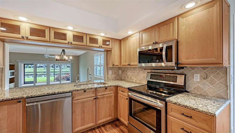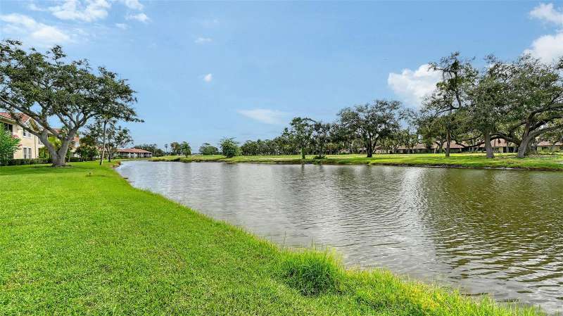Welcome to Golf Pointe Circle, a beautifully updated residence tucked away in the exclusive Golf Pointe at Palm-Aire community. This stylish three-bedroom, two-bath villa offers a rare combination of privacy, comfort, and timeless Florida charm. From the moment you arrive, you’ll notice the attention to detail; from the manicured landscaping to the welcoming curb appeal of this end-unit villa located on a peaceful cul-de-sac. Inside, an airy open floor plan bathed in natural light creates a sense of space and serenity, with large windows framing tranquil views of the lake beyond. Start your day on the expansive screened lanai, enjoying the gentle morning breeze and the calming sounds of nature. In the evening, unwind with your favorite drink as the sun sets over the water, casting golden hues across the sky and reflecting off the lake; pure bliss, right from your backyard. The updated interior offers comfortable and stylish living with tasteful finishes throughout. The kitchen is well-appointed with modern appliances, solid surface counters, and a layout that opens beautifully to the living and dining areas, making it ideal for both quiet mornings and entertaining guests. The spacious primary suite features a private bath and generous closet space, while the additional bedrooms provide flexibility for guests, a home office, or creative space. This home has been thoughtfully enhanced with a long list of improvements, including high-impact windows for peace of mind, a brand-new HVAC system installed in 2024, and an advanced water treatment and reverse osmosis system. Additional upgrades like plantation shutters, Hunter Douglas blinds, and stylish ceiling fans add both function and flair. Enjoy the ease of maintenance-free living with access to two heated community pools and beautiful green spaces throughout the neighborhood. Optional membership to the Palm-Aire Country Club offers access to golf, tennis, fitness, and social activities for those seeking an active lifestyle, all just minutes from your front door. Located near the vibrant University Parkway corridor, you’ll find yourself close to shopping, dining, hospitals, downtown Sarasota, Lakewood Ranch, and the world-class beaches of the Gulf Coast. Whether you’re looking for a full-time residence, a seasonal escape, or a place to simply relax and enjoy, this villa offers the perfect blend of comfort, convenience, and understated luxury. Come experience the ease and elegance of life at Golf Pointe. This exceptional home is ready to welcome you.