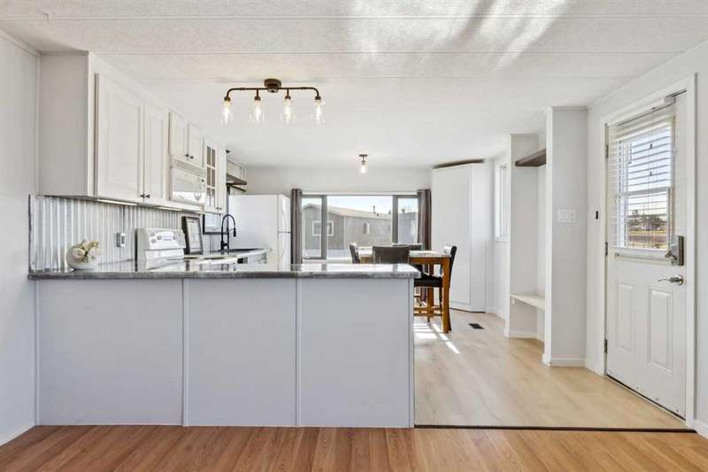 Experience affordable, adaptable living in Calgary’s mobile home community at 6220 17 Avenue SE #364. This home is ideally located for EASY DOWNTOWN access, with quick routes to major roadways, schools, shopping, and public transit, plus the Calgary Village on-site facilities that offer social and recreational options within the community. Fresh updates: even though the home was built in 1982, the exterior has been renovated with a metal roof, added insulation and vinyl siding and windows, giving it a refreshed, modern look and a welcoming vibe. This makes the home an excellent entry point for first-time buyers or downsizers seeking an affordable urban lifestyle. Three bedrooms, a four-piece bath, and a large kitchen connected to a spacious living room create a comfortable, livable layout. Notably, this unit is located in the last row, offering a rare, large land area adjacent to the lot—perfect for a variety of outdoor activities and future enhancements. Sit on your front deck an enjoy a mountain view. Also included is a large shed that provides extra storage. The lot fee covers water / sewer / trash and access to the clubhouse. The clubhouse is an amazing feature that has a hall, small kitchen, pool table, exercise room and playground. All of this helps bring the community together. Don’t miss this opportunity to own in Calgary—schedule your private showing today and see how this mobile home and Calgary Village Community Centre can fit your needs.