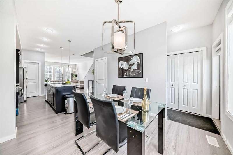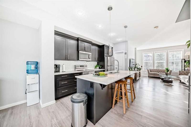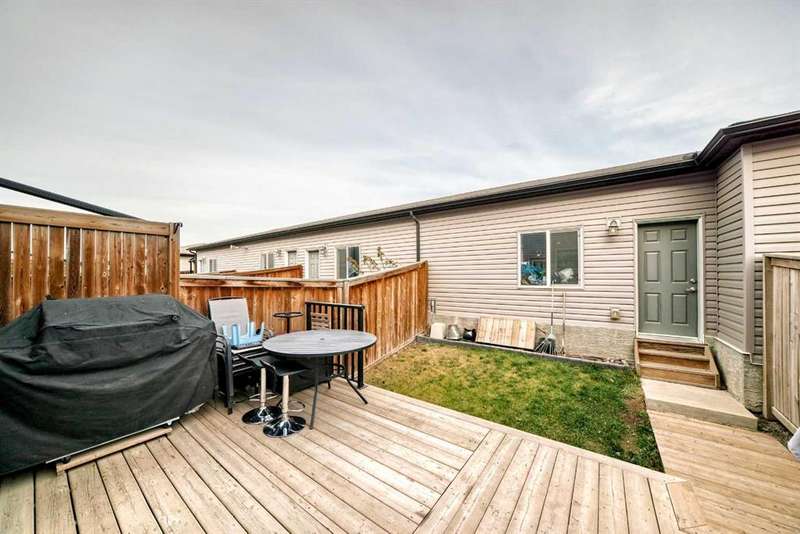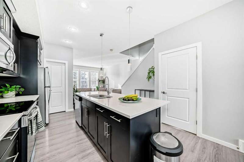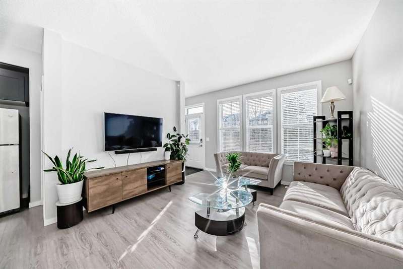 A MUST SEE! NO CONDO FEES! Welcome to this stunning and meticulously maintained 2-storey townhouse in the beautiful community of Legacy. Offering over 1,940 square feet of living space, this home features vinyl plank floors on the main and basement level, cozy carpet upstairs , and a 9 feet ceiling that enhance the open-concept design. The main floor boasts a bright living room and a modern designer kitchen complete with trendy cabinetry, quartz countertops, a large center island, stainless steel appliances and tile backsplash. A convenient 2-piece powder room completes this level. Upstairs, you'll find three generously sized bedrooms with ample closet space. The primary bedroom includes a full ensuiite with quartz counters and a walk-in closet. Another 4-piece bathroom, also with quartz countertops, is located in the hallway. The fully developed basement offers a spacious family room perfect for relaxing or entertaining, along with an additional bedroom and a 3-piece bathroom. Within close proximity to public transit, schools, shopping and playgrounds- everything you need is within reach. Don't miss out-book your showing today!