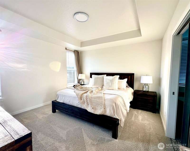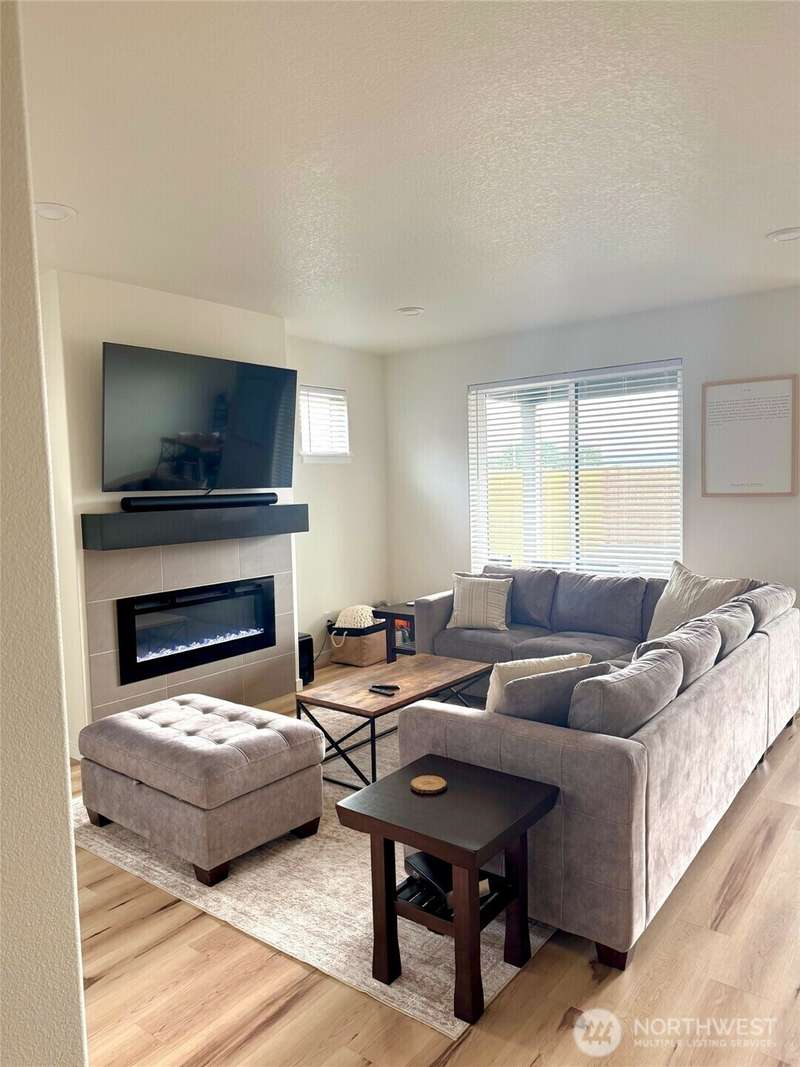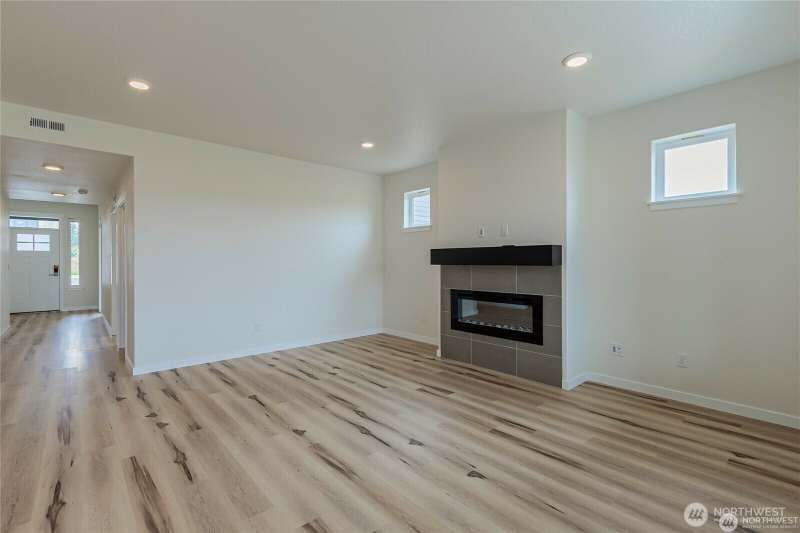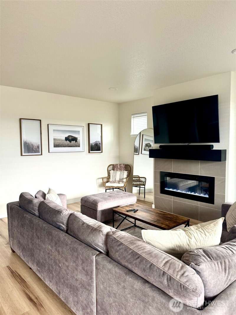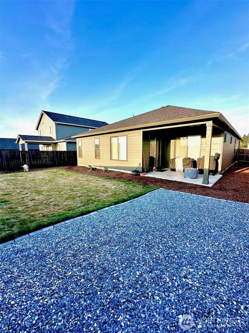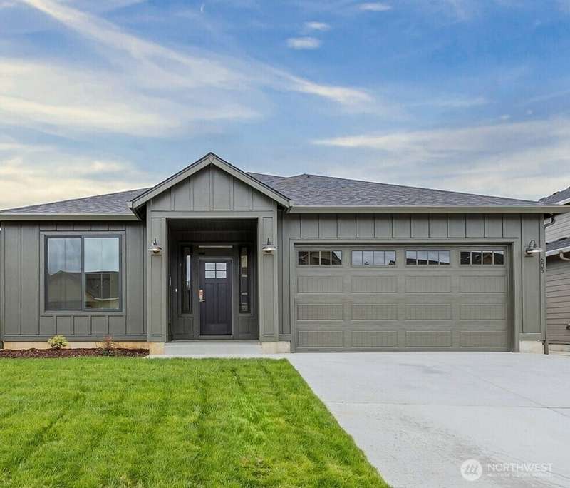 Beautiful and spacious single level modern farmhouse home with 1,781 sq. ft! This spacious 1-story has 4 bedrooms and 2 bathrooms. The home features custom alder cabinets with slow close, quartz slab, full backsplash, luxury vinyl plank waterproof flooring, fireplace, blinds throughout, smart wiring, covered patio & 2-car garage. The primary suite has a large soaking tub, dual sinks, separate shower & walk-in closet. Heat pump/AC, fully fenced and landscaped with a sprinkler system. ENERGY STAR Certified for lower monthly utility bills & increased comfort. Relax on the back patio and enjoy the stunning sunsets! Located in the desirable Grand Prairie Estates community with neighborhood park & playground. Easy I-5 access.