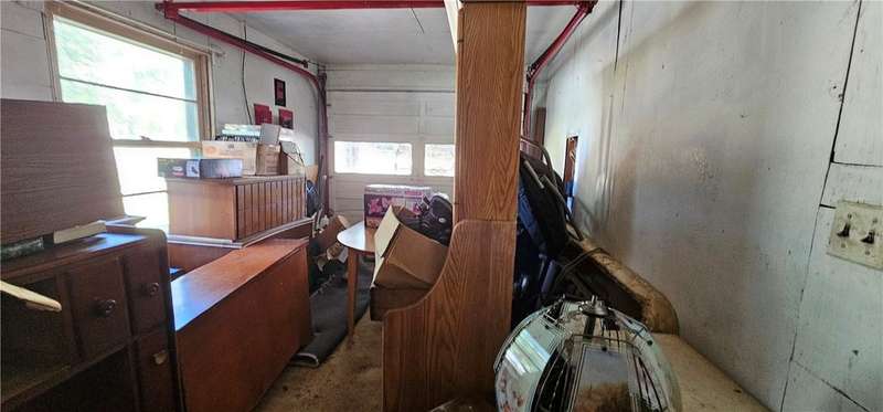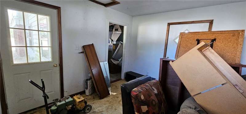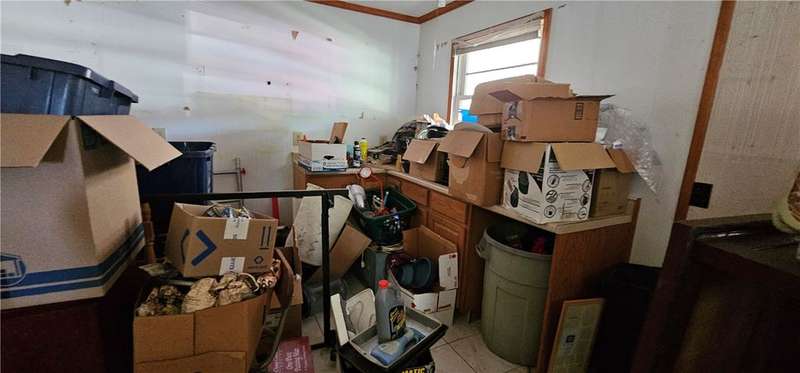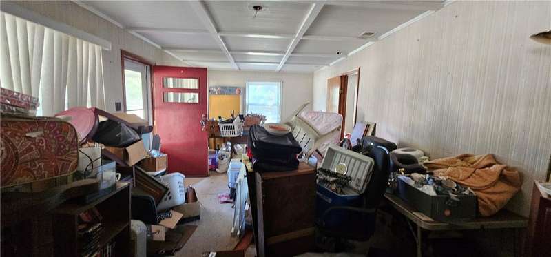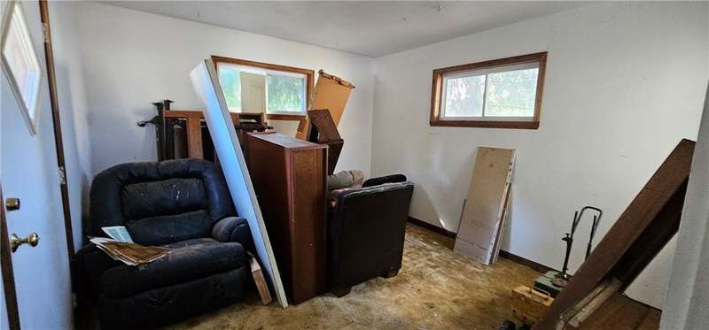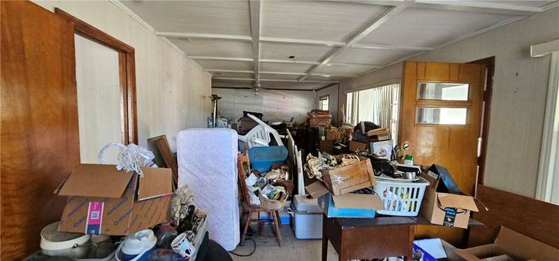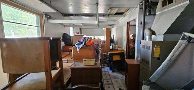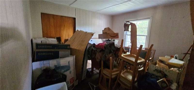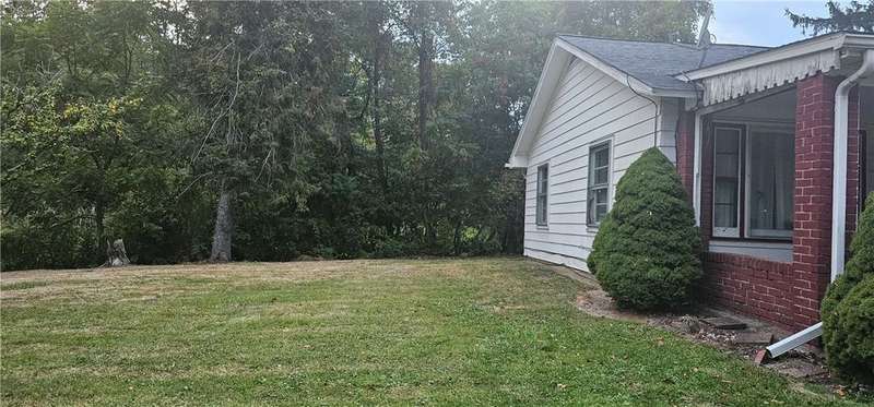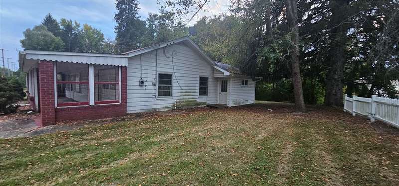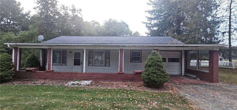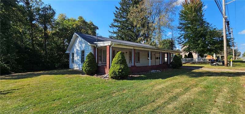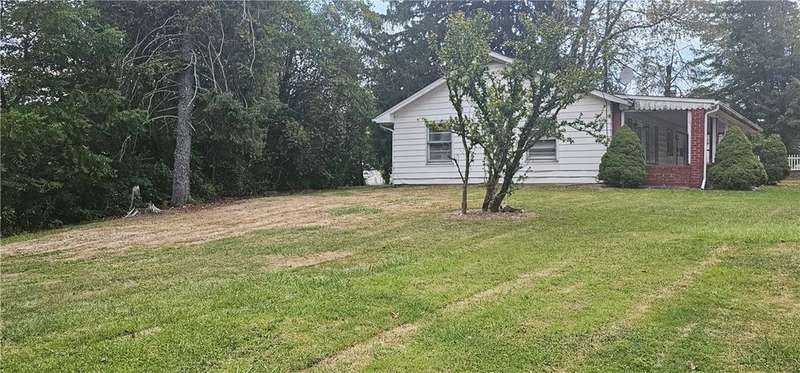 Neshannock Ranch on 1.3 Wooded Acres! Discover this cozy, condo-sized ranch perfect for flipping or rental income. Nestled on a spacious 1.3-acre lot, this home offers privacy and potential. The property features 2 bedrooms and a den/office that can serve as a 3rd bedroom. Enjoy the open concept kitchen, dining, and living room area that spans the front of the house. Live all on one level not a single step to enter or exit the property. Plenty of room for seating on the large 44 x 8 patio/porch to watch the sunrise. While the utilities are currently disconnected, the roof is approximately 10-12 years old. The house has been used for storage by the current owner, a PA licensed real estate agent, and includes all yard sale items in the sale. With approximately 187 feet of frontage, from the white picket fence to the telephone pole. The stream running through the property a serene natural setting and enjoy the wildlife! Don't miss this opportunity to own a piece of Neshannock Twp!