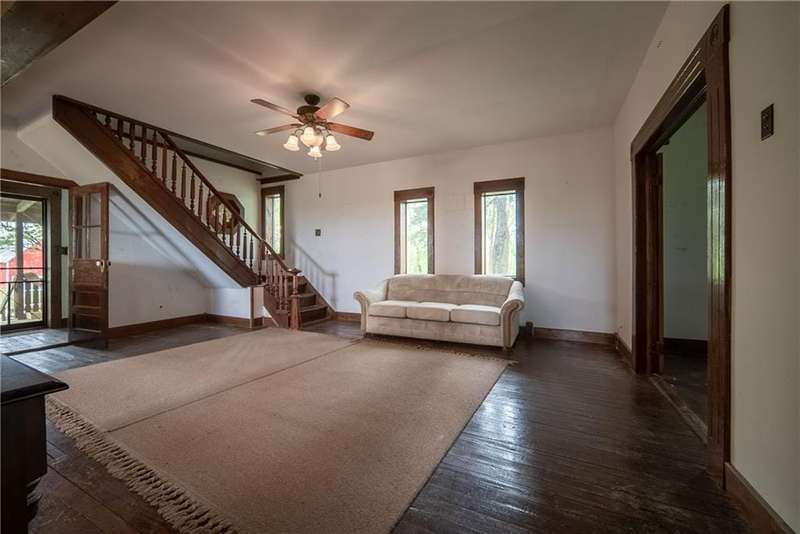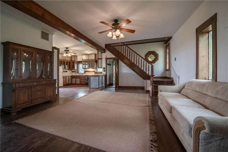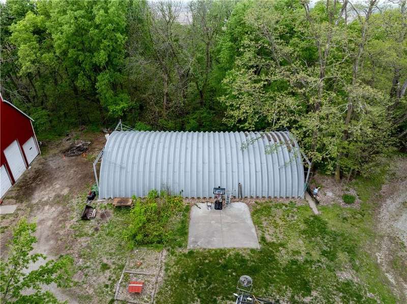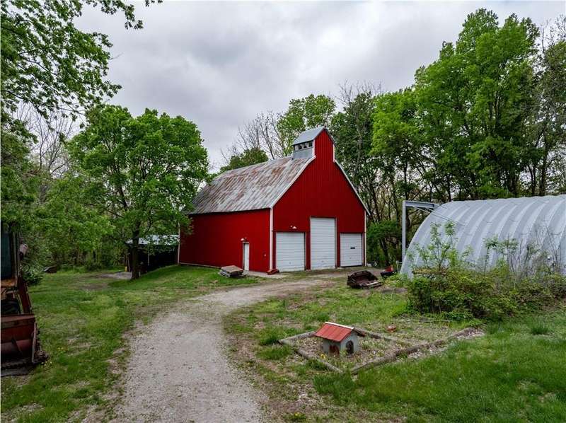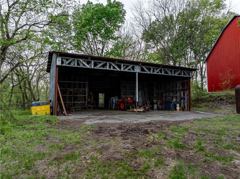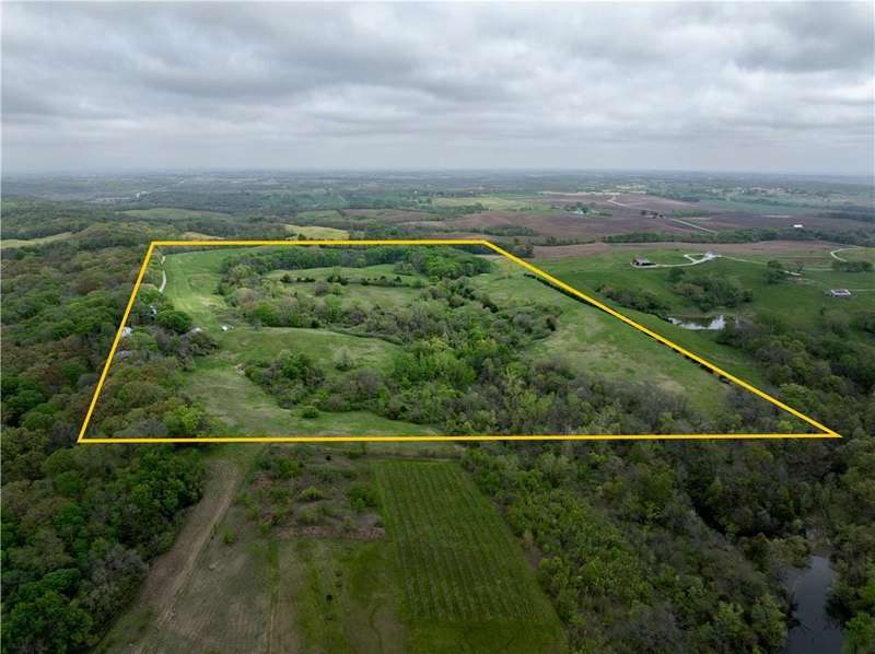 Discover the perfect blend of history, opportunity, and wide-open space with this remarkable 75+/- acre property nestled just off the highway between Platte City and Leavenworth. This fully fenced acreage offers panoramic views, abundant wildlife, and a peaceful, rural setting while remaining easily accessible.At the heart of the property sits a charming 100+ year old 1.5-story cabin with 3 bedrooms and 2 bathrooms. While in livable condition, the home is brimming with potential and ready for your vision and updates. Original hardwood floors and timeless character set the stage for a truly inspiring renovation project.Outbuildings include a classic 35 x 47 tobacco barn with newer metal siding, three bays, and electricityperfect for storage or workshop space. The impressive 38 x 65 all-metal Quonset hut offers both electricity and water, a partial bathroom, and a climate-controlled interior shop with a window AC unitideal for a range of uses.Aviation enthusiasts will appreciate two airplane hangars: the front hangar measuring 40 wide x 15 deep with a 16 x 16 tail extension, and the rear hangar at 41 wide x 24 deep with a 14 x 14 tail extension. The 35 wide x 1,200 long grass airstrip adds rare and valuable functionality.Positioned on a scenic bluff, this unique property combines rustic charm, utility, and natural beauty in one exceptional package. Whether you're looking to restore a historic home, pursue agricultural endeavors, or simply enjoy the land and views, this property has it all.All measurements are approximate. Shown by appointment only.