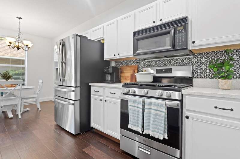 Under contract-accepting backup offers. Highly Desirable Townhome in West Park Village of Westchase!! Welcome to this beautifully maintained and move-in ready 3-bedroom, 2.5-bathroom townhome located in the heart of sought-after West Park Village in Westchase! LANDSCAPING, EXTERIOR PAINTING, AND ROOF REPLACEMENT INCLUDED! From the moment you step inside, you’ll love the light-filled and versatile floor plan. The front formal living room offers flexible space—perfect as a living area, home office, or formal dining room. Just off this area, you'll find a stylish half bath with modern finishes. The kitchen is a true gem, featuring stunning quartz countertops, a new sink, a contemporary backsplash, and a spacious walk-in pantry/laundry combo. Gas range and refrigerator 2021. Dishwasher 2022. The open-concept layout flows effortlessly into the casual dining nook and family room, ideal for entertaining or relaxing with your large-screen TV. Step through the rear doors to your private lanai, a peaceful spot to enjoy your morning coffee or evening unwind. The rear-entry 2-car garage is easily accessed via the alley and comes with ample overhead storage. Durable and attractive wood-look tile flooring runs throughout the first floor, adding style and easy maintenance. Upstairs, the primary suite features soaring vaulted ceilings, a large walk-in closet, and an elegant ensuite bathroom complete with a dual-sink vanity and oversized walk-in shower. Both upstairs bathrooms feature new quartz countertops and sinks. Two additional bedrooms share a full bath and convenient linen storage. Enjoy recent updates including fresh interior paint in the main living areas, stairwell, and hallway, plus a newer roof (only 2 years old!) for peace of mind. Best of all, this home offers maintenance-free living with full access to Westchase’s unmatched amenities—including two pools, a toddler splash zone, 10 lighted tennis courts, basketball courts, playgrounds, a splash park, outdoor ping pong, fitness stations, nature trails, and underpass access to safely cross Linebaugh Ave. All of this, just a short stroll to trendy restaurants, coffee shops, and boutiques in West Park Village, and only minutes to Citrus Park Mall, Costco, International Plaza, Tampa International Airport, and Downtown Tampa. Don’t miss your chance to live in one of Tampa’s premier communities—Welcome Home!
