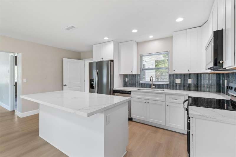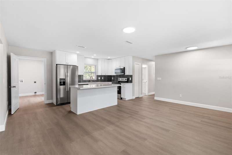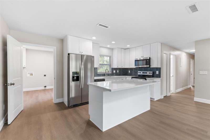 Beautiful and TOTALLY REMODELED 4 bedroom, 3 bathroom home in NW Gainesville, minutes to UF! This 100% renovated home boasts an open floor plan with new beautiful vinyl plank flooring throughout, a brand new kitchen with SS appliances, beautiful backsplash and kitchen island. Large family room and formal dining rooms perfect for entertaining. Primary suite is expansive with walk-in closet, brand new primary bathroom with walk-in shower. 3 guest bedrooms, one with it's own bathroom. Home also features new septic tank, brand new metal roof, and fresh paint inside and out! Call today before its gone!