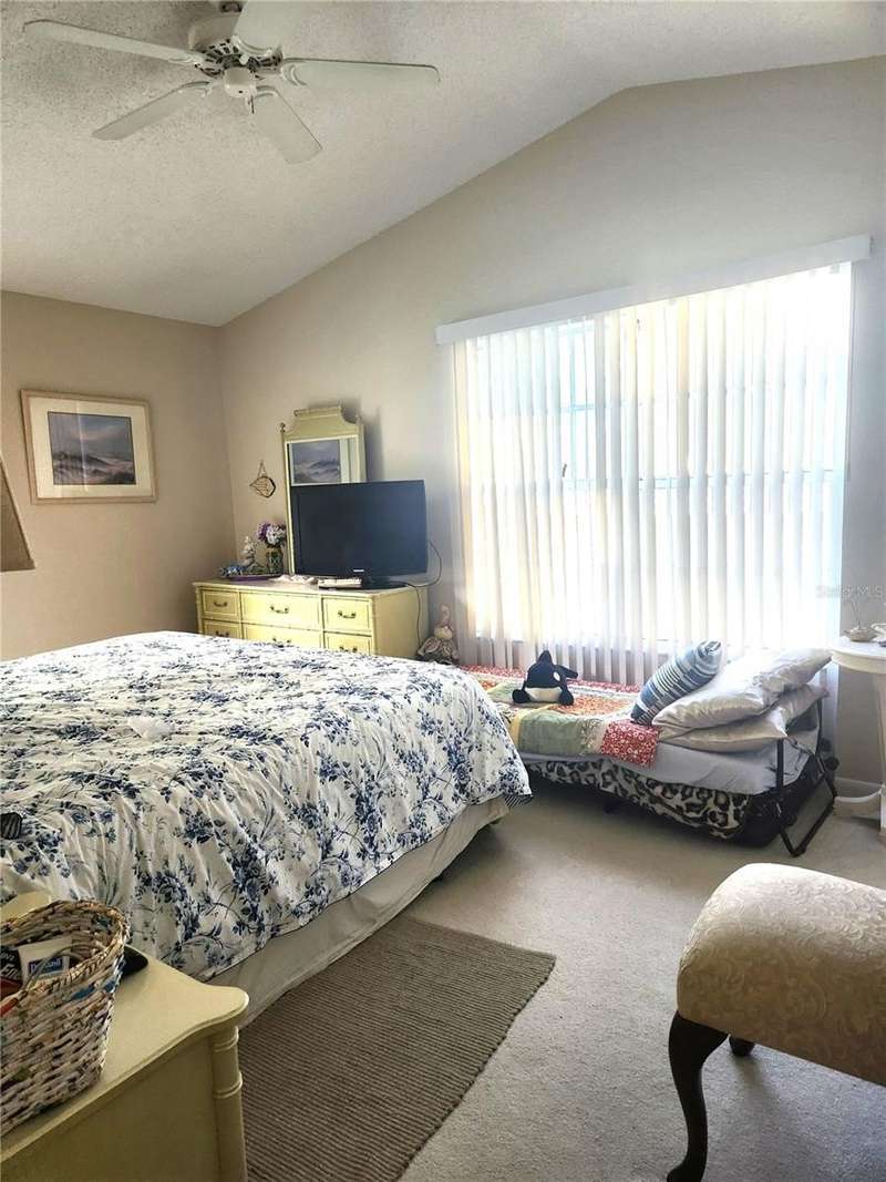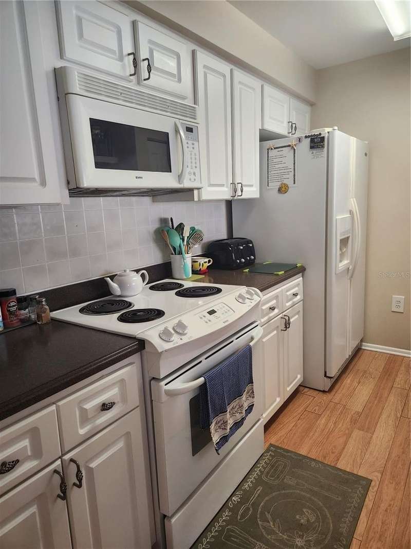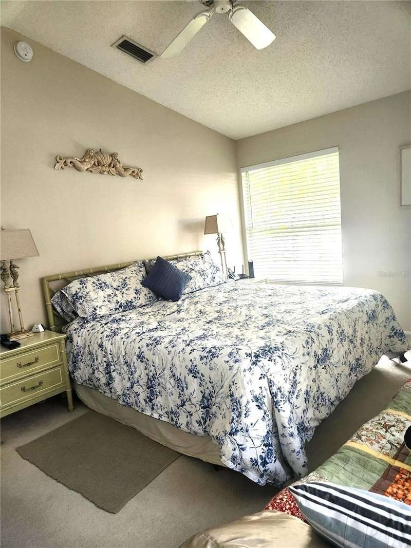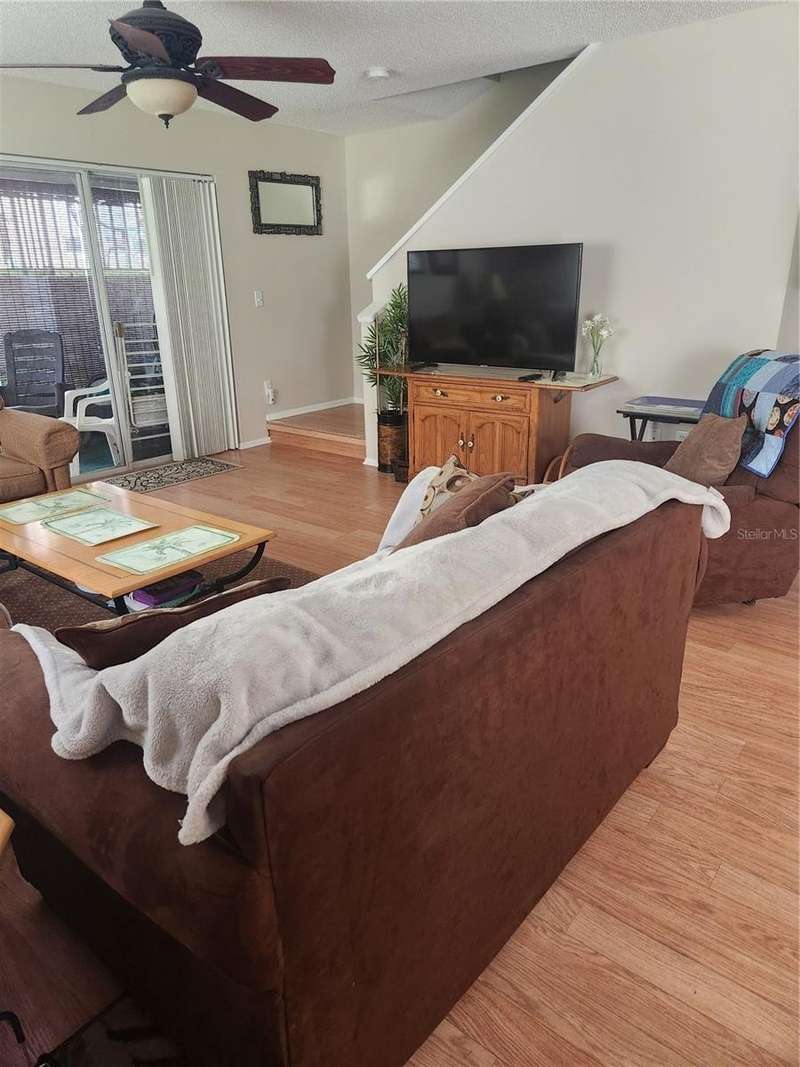 Furnished Updated, quiet end unit with lots of light and extra windows. Wood floors throughout first floor. Kitchen with 2 pantries opens to Dining Room and Dining Room opens to Living Room. Beautiful views of the green space. Sliding doors lead to private screened lanai with gas grill, extra cooler, chairs and more. ½ bath on first floor. Full size washer & dryer. Spacious bedrooms with vaulted ceilings and large closets with organizers & shelves. King size beds with small bed for guests in each room. Choose from memory foam or firm mattress. Full bath with tub and dual sinks. Blinds throughout. Reserved parking is the first space at the end of the sidewalk. Beautiful grounds with community pool and car wash. Great location close to shopping, restaurants, beaches, parks, golf courses and more! Two police officers living on site.