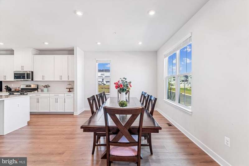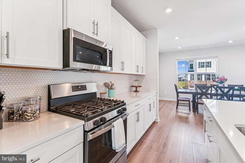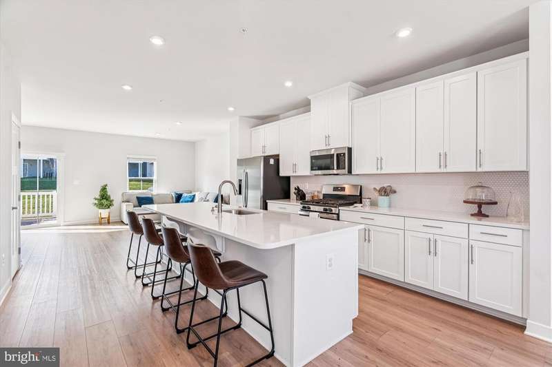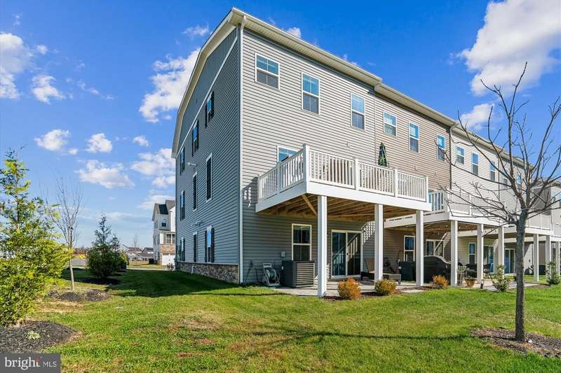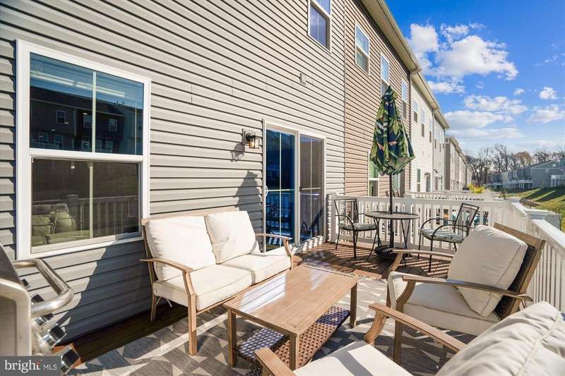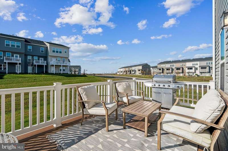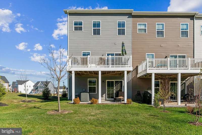 Welcome to this beautiful end-unit townhouse built in 2023, offering over 2,400 square feet of modern living space in the desirable Wellington Farms community. Designed with both style and comfort in mind, this open-concept home features a gourmet kitchen with a large center island, upgraded countertops, and premium flooring throughout. The main level showcases bright, open living and dining areas that flow seamlessly to a large Trex deck-perfect for outdoor dining and entertaining. The entry level includes a spacious recreation room that opens to a flagstone patio, providing additional outdoor living space and direct access to the green space behind the home. Upstairs, the primary suite offers a walk-in closet, soaking tub, and a frameless glass shower, creating a spa-like retreat. Two additional bedrooms and an additional bath with a tub shower offer plenty of room for the family. Additional highlights include a large two-car garage with an EV charger, a low-maintenance exterior, and an ideal location within minutes of I-95 and ICC 200, offering easy access to both Baltimore and Washington, D.C. Enjoy the vibrant Wellington Farms community, complete with a pool house, clubhouse, and scenic walking paths. Don't miss your chance to own this nearly new, move-in ready end-unit home that perfectly blends luxury, convenience, and low-maintenance living in one of Howard County's newest and most desirable neighborhoods!