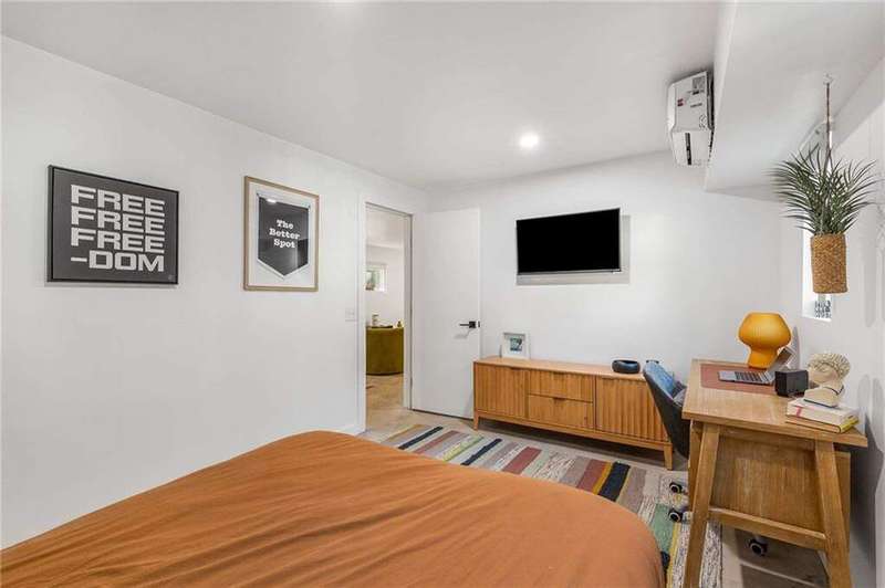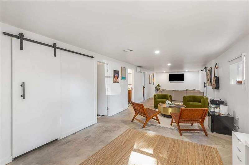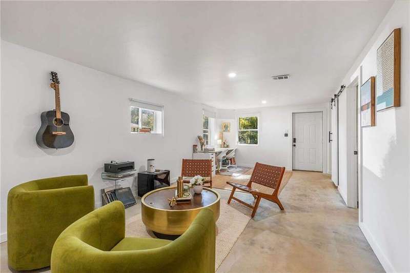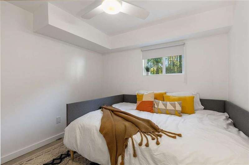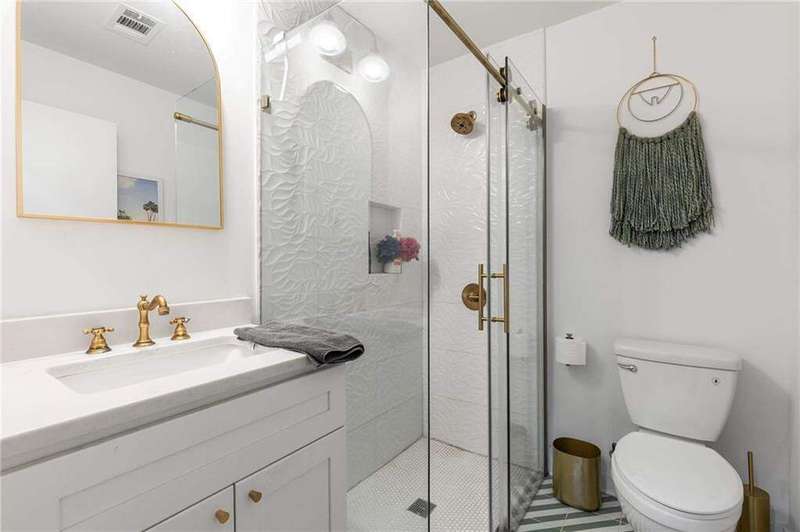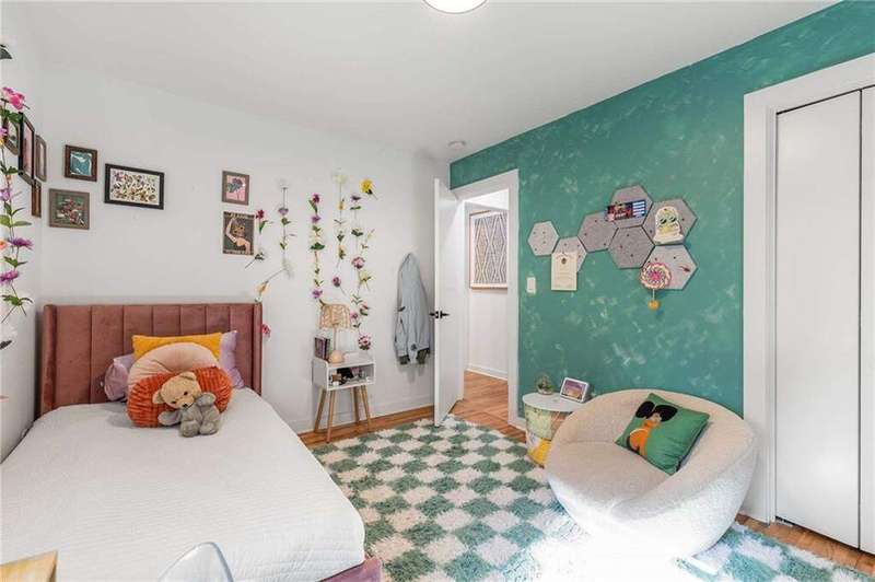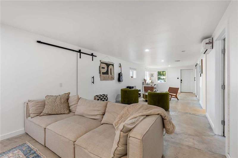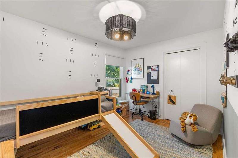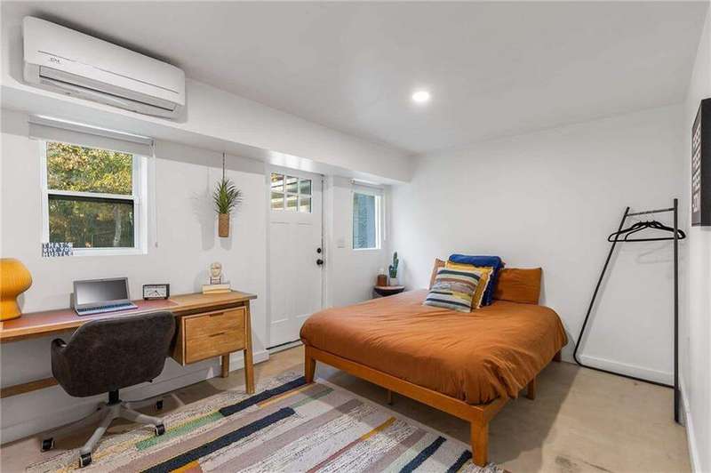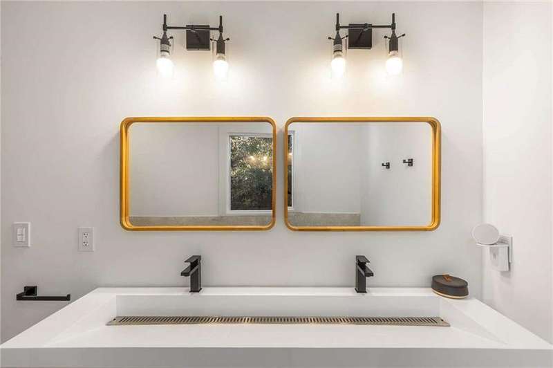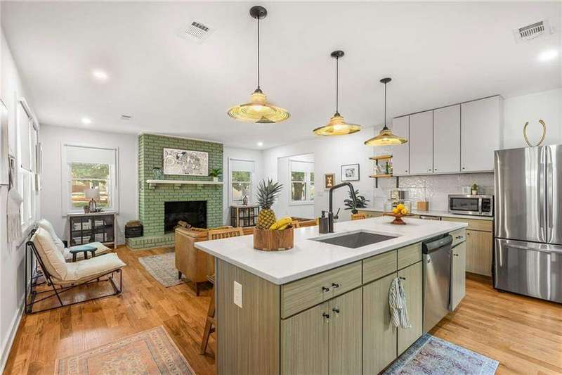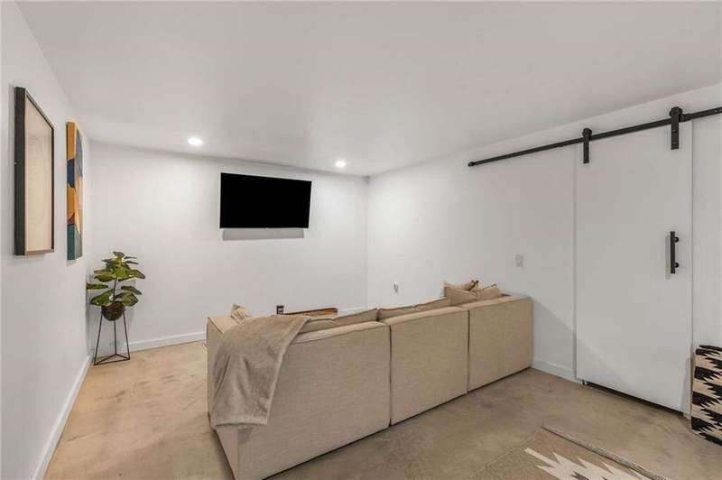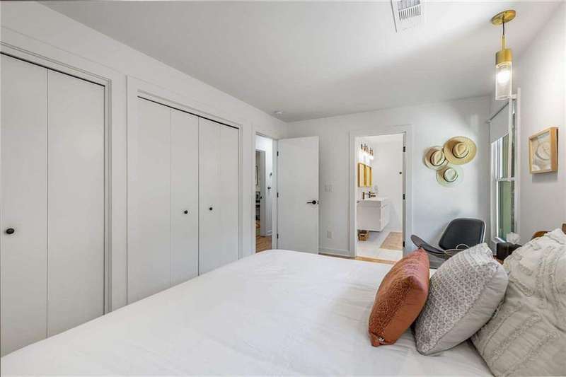 An architectural-modern showpiece on an expansive double lot, this residence marries relaxed sophistication with luminous, open-concept living and a floor plan made for gathering. A dramatic central core showcases a sunken living room anchored by clean lines and generous glazing, flowing seamlessly into a designer kitchen with statement island, premium finishes, and purposeful storage. Multiple doors open to outdoor living-including a treehouse-style deck nestled in the canopy creating effortless indoor-outdoor continuity for morning coffee, weeknight dinners, and weekend entertaining. The luxury-inspired owner's suite is a private retreat, appointed with a beautifully tiled bath featuring a soaking tub, oversized walk-in shower, and a sleek floating double vanity. Throughout the main level, hardwood floors and curated lighting elevate the ambiance, while sightlines extend to the grounds, emphasizing space and serenity. Down a wide, elegant staircase, the finished terrace level functions as a true second living zone-perfect for multi-gen living, guests, or an epic media/game area-with two additional bedrooms, a full bath, and a large living/rec room with flexible zones for work and play. A second driveway simplifies access and parking, and a bonus garage offers limitless potential for a studio, gym, she-shed, or workshop. Thoughtful design, abundant natural light, and versatile spaces culminate in a rare, refined retreat crafted for elevated everyday living and unforgettable gatherings. Located in the highly desired King Springs School District. Close to Silver Comet Trail, Food Trucks, Smyrna Market Village and The Battery.