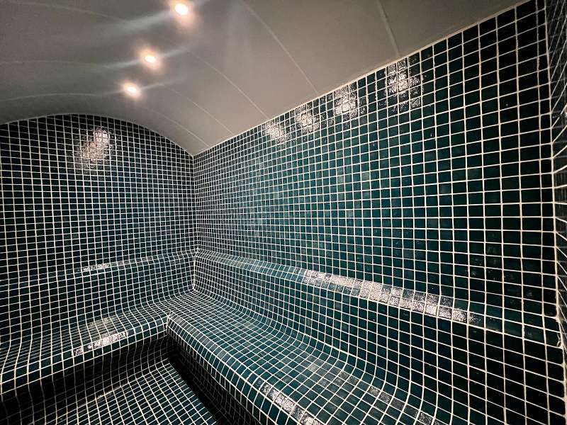 The residential complex is equipped with numerous features, including a swimming pool with aquapark, a children's playground, relaxation areas, a Turkish bath, a sauna, a steam room, a lobby, double elevators, security personnel, 24/7 CCTV surveillance, a generator, open parking, and well-maintained landscaping.