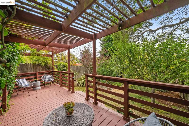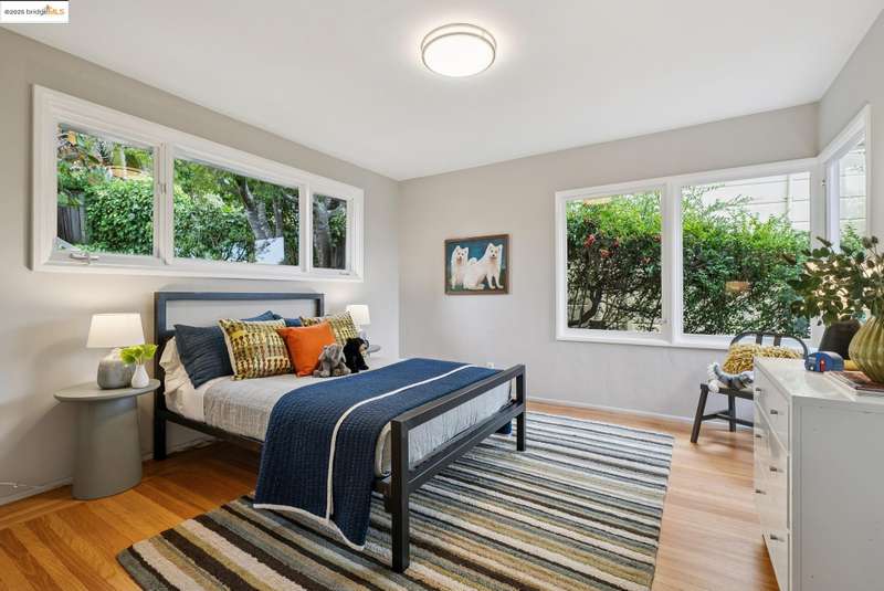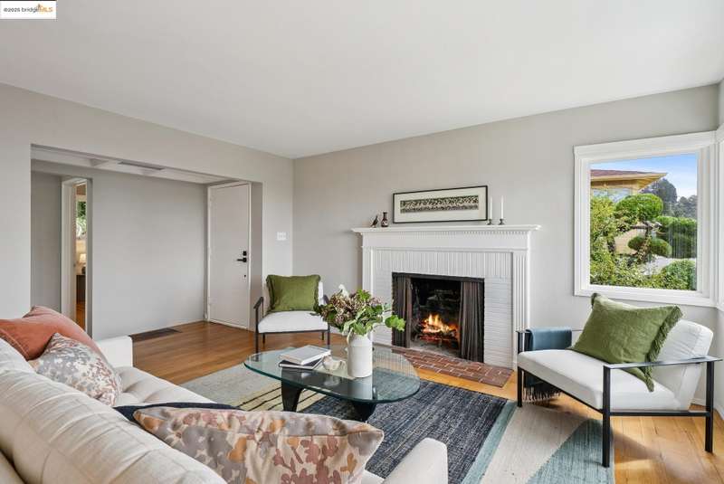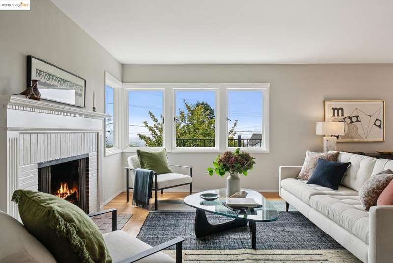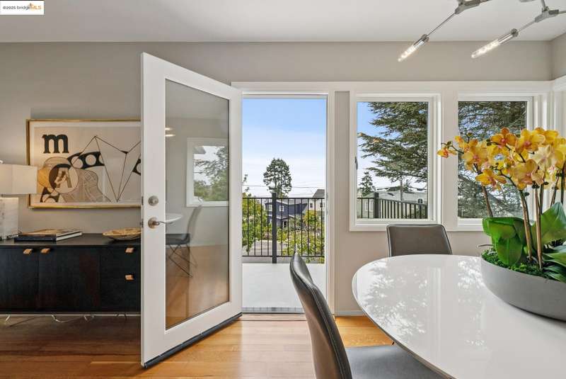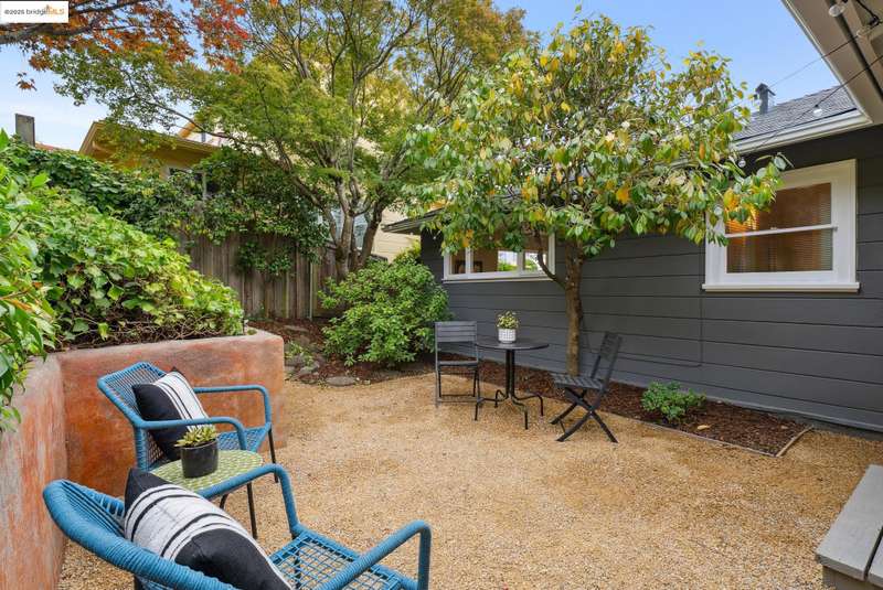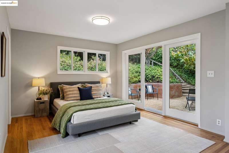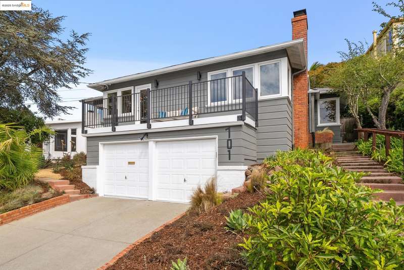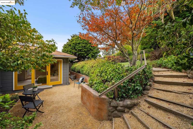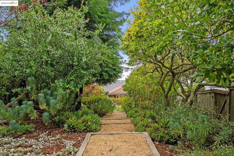 Set atop the ridge of the Berkeley Hills, 701 Grizzly Peak offers wonderful Bay views; professionally landscaped front and back yards; and proximity to Tilden Park with its Little Farm, vintage carousel, Lake Anza, steam train, seemingly countless picnic sites, and miles of trails. Once inside, the gracious room sizes become apparent and natural light fills every space due to the home's generous fenestration. The intent is clearly to draw the outside in. An open floor plan in the living and dining rooms contributes to the sense of airy spaciousness. There's room for casual dining in the kitchen and each of the bedrooms is larger than one expects to find while both bathrooms have been handsomely updated. The use of glass-paned doors throughout encourages one to take full advantage of the beckoning outdoor spaces. There's a west-facing view deck at the front from which to take in glorious sunsets. The primary bedroom at the back of the house has a triple glass slider leading out to the secluded gravel-covered patio. Up a short run of stairs, one finds a lush grassy area as well as a cabana-like structure at the very back of the deep, usable lot from which the view of Mount Tamalpais can be enjoyed!