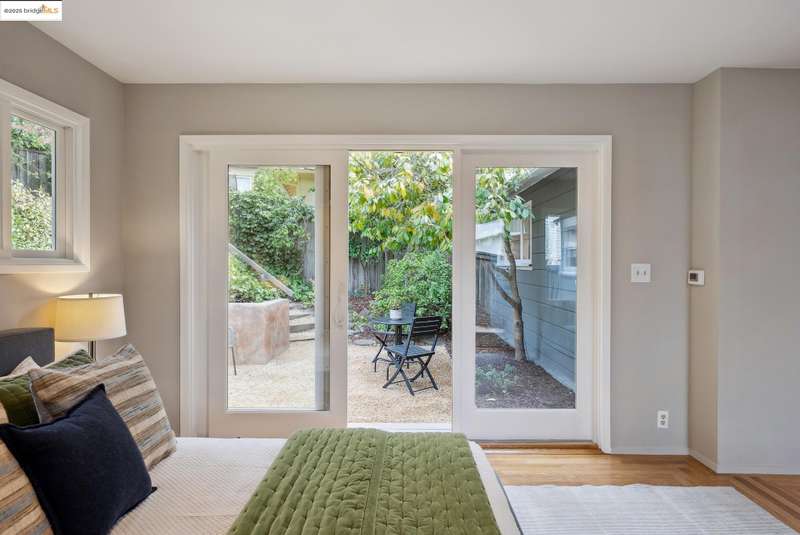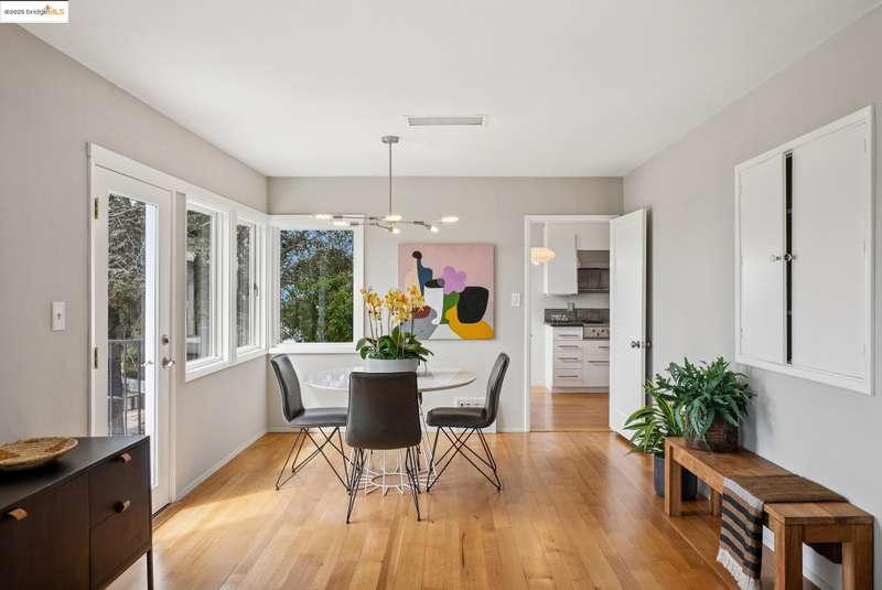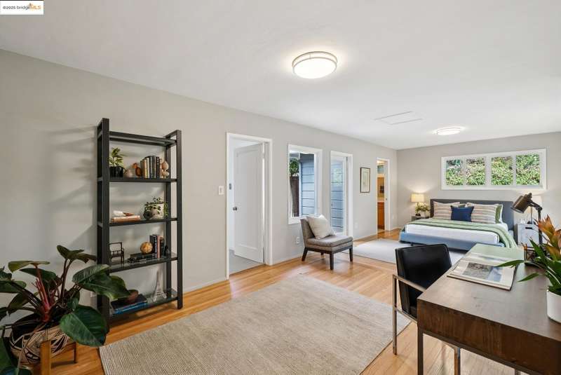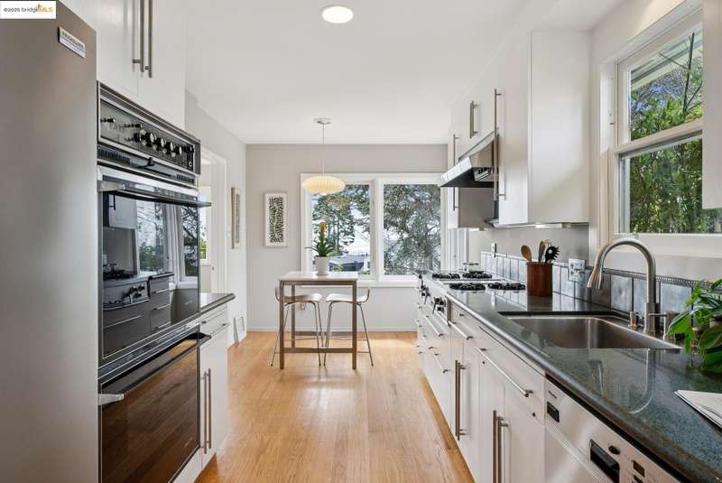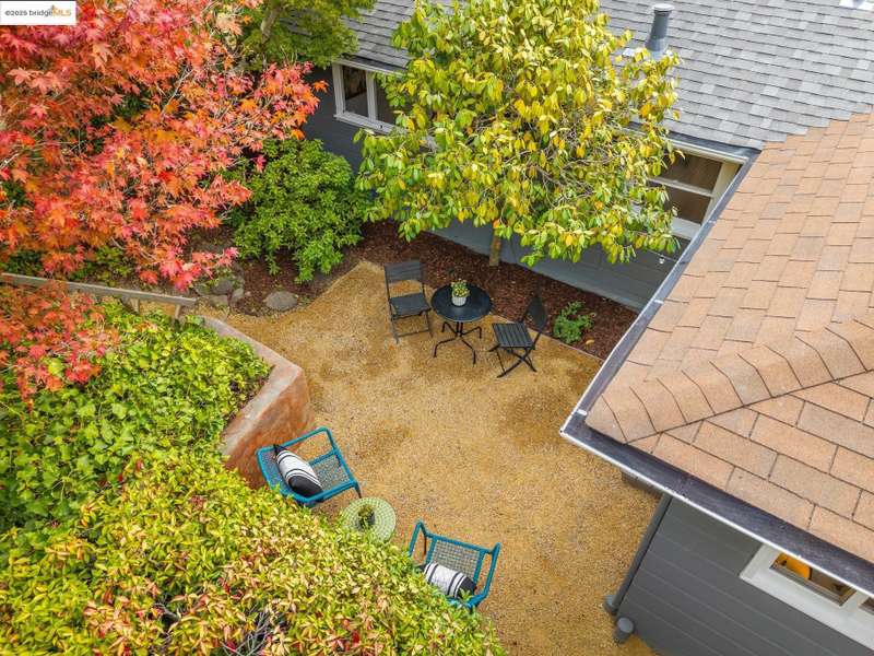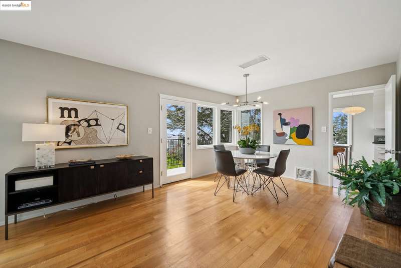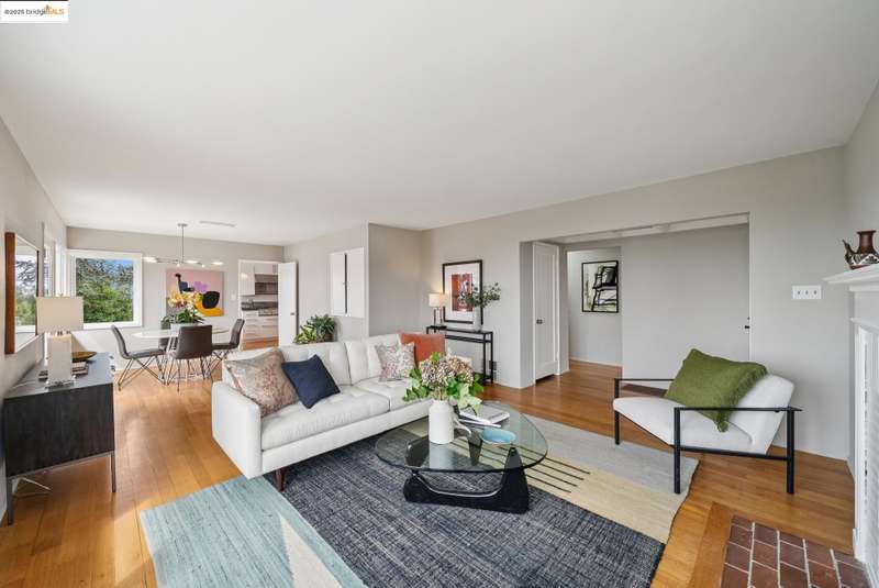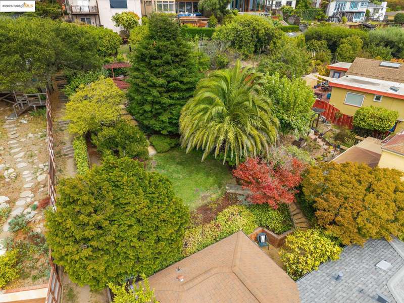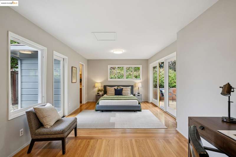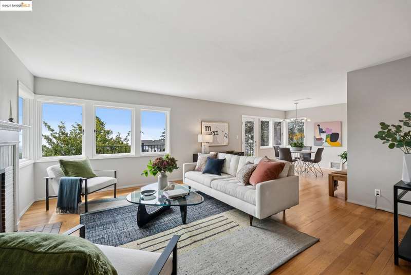 Set atop the ridge of the Berkeley Hills, 701 Grizzly Peak offers wonderful Bay views; professionally landscaped front and back yards; and proximity to Tilden Park with its Little Farm, vintage carousel, Lake Anza, steam train, seemingly countless picnic sites, and miles of trails. Once inside, the gracious room sizes become apparent and natural light fills every space due to the home's generous fenestration. The intent is clearly to draw the outside in. An open floor plan in the living and dining rooms contributes to the sense of airy spaciousness. There's room for casual dining in the kitchen and each of the bedrooms is larger than one expects to find while both bathrooms have been handsomely updated. The use of glass-paned doors throughout encourages one to take full advantage of the beckoning outdoor spaces. There's a west-facing view deck at the front from which to take in glorious sunsets. The primary bedroom at the back of the house has a triple glass slider leading out to the secluded gravel-covered patio. Up a short run of stairs, one finds a lush grassy area as well as a cabana-like structure at the very back of the deep, usable lot from which the view of Mount Tamalpais can be enjoyed!