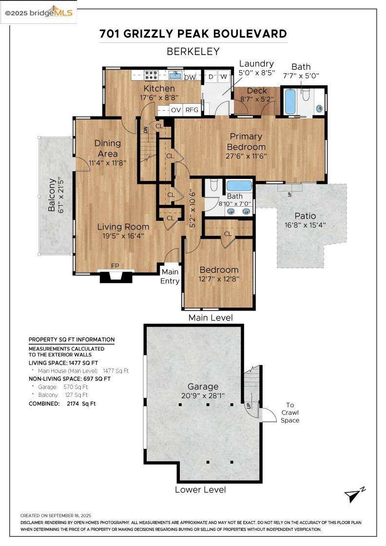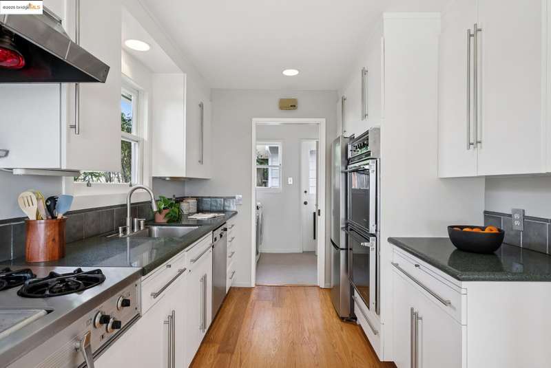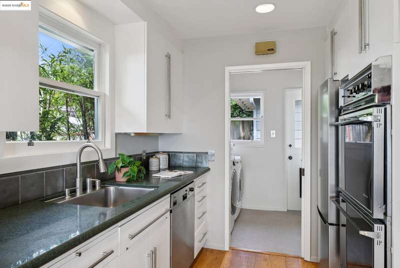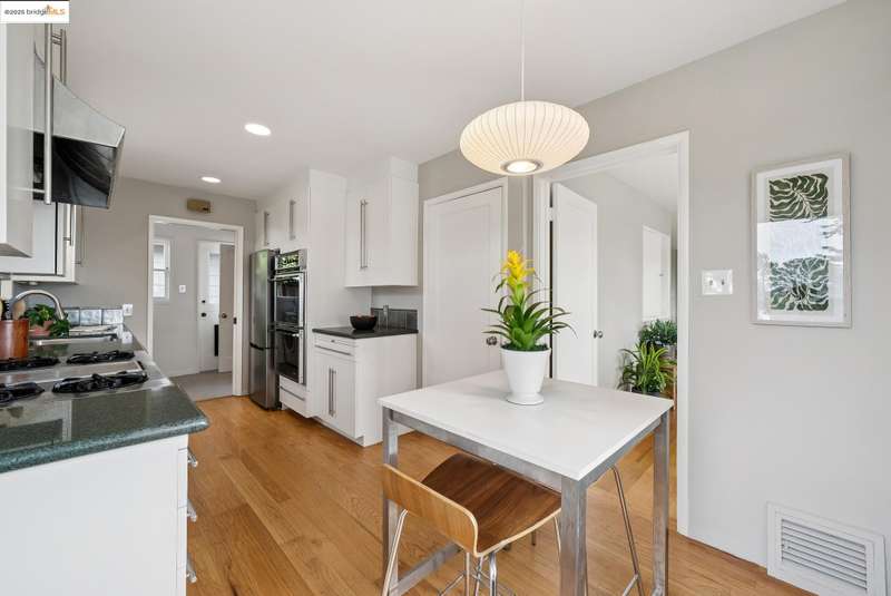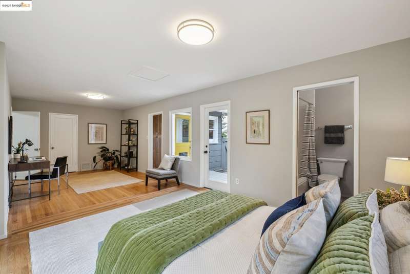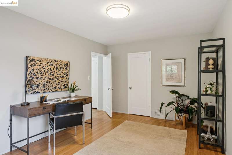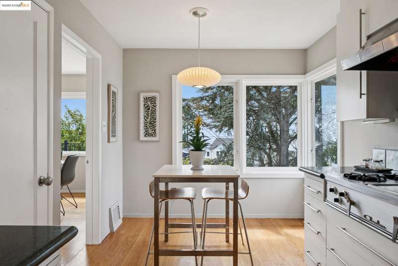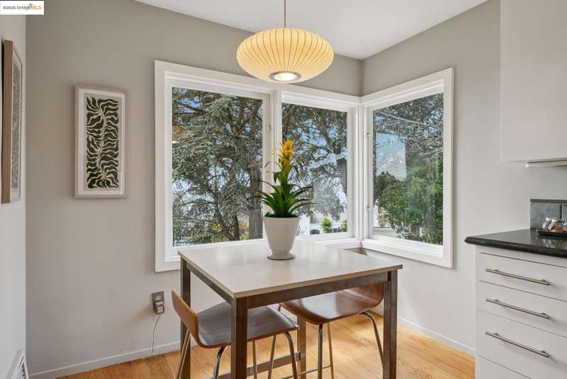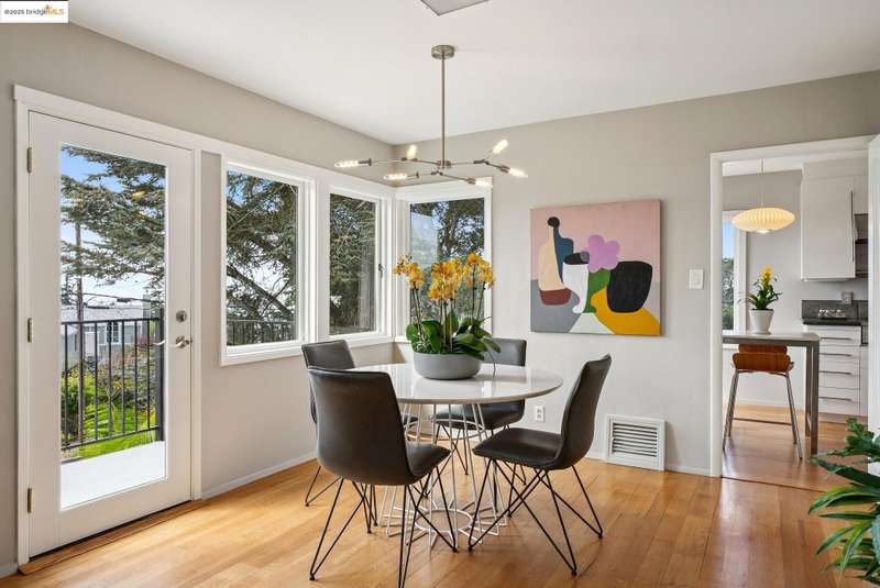 Set atop the ridge of the Berkeley Hills, 701 Grizzly Peak offers wonderful Bay views; professionally landscaped front and back yards; and proximity to Tilden Park with its Little Farm, vintage carousel, Lake Anza, steam train, seemingly countless picnic sites, and miles of trails. Once inside, the gracious room sizes become apparent and natural light fills every space due to the home's generous fenestration. The intent is clearly to draw the outside in. An open floor plan in the living and dining rooms contributes to the sense of airy spaciousness. There's room for casual dining in the kitchen and each of the bedrooms is larger than one expects to find while both bathrooms have been handsomely updated. The use of glass-paned doors throughout encourages one to take full advantage of the beckoning outdoor spaces. There's a west-facing view deck at the front from which to take in glorious sunsets. The primary bedroom at the back of the house has a triple glass slider leading out to the secluded gravel-covered patio. Up a short run of stairs, one finds a lush grassy area as well as a cabana-like structure at the very back of the deep, usable lot from which the view of Mount Tamalpais can be enjoyed!