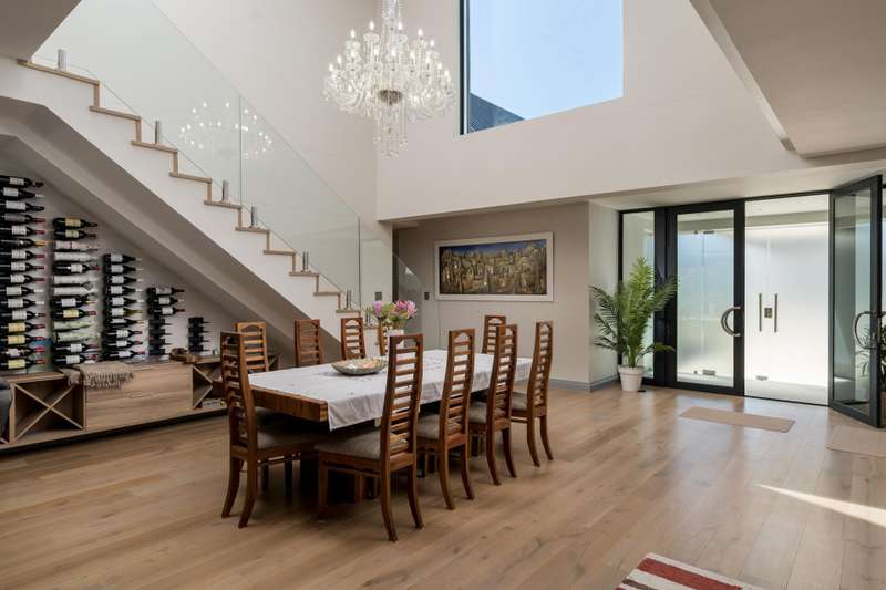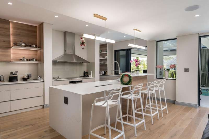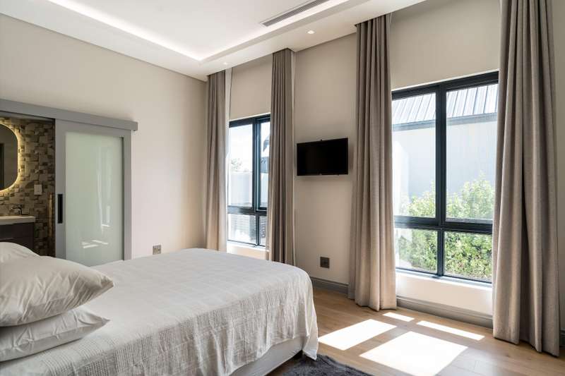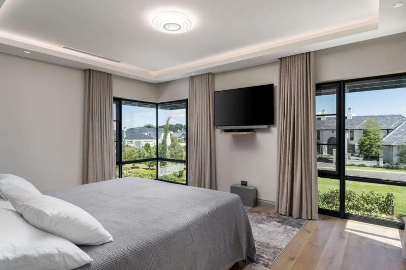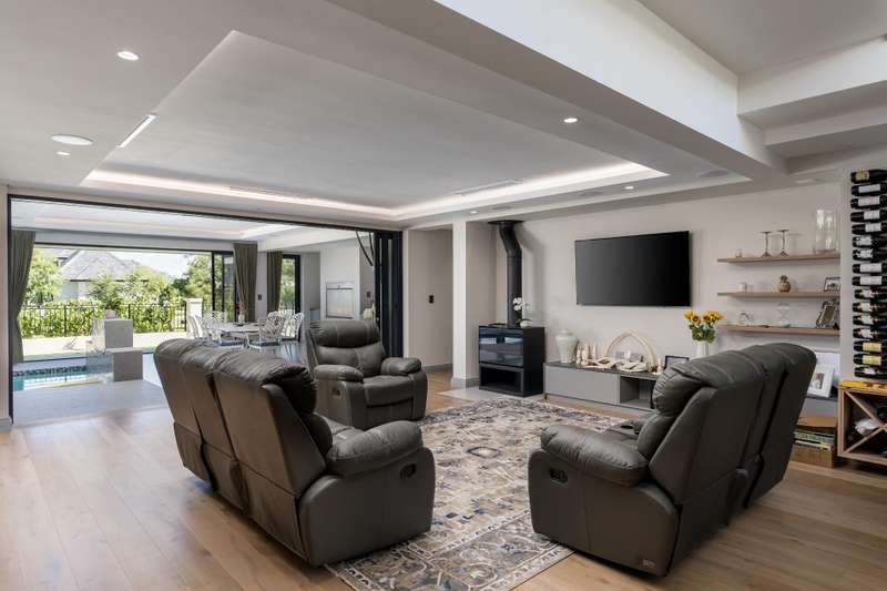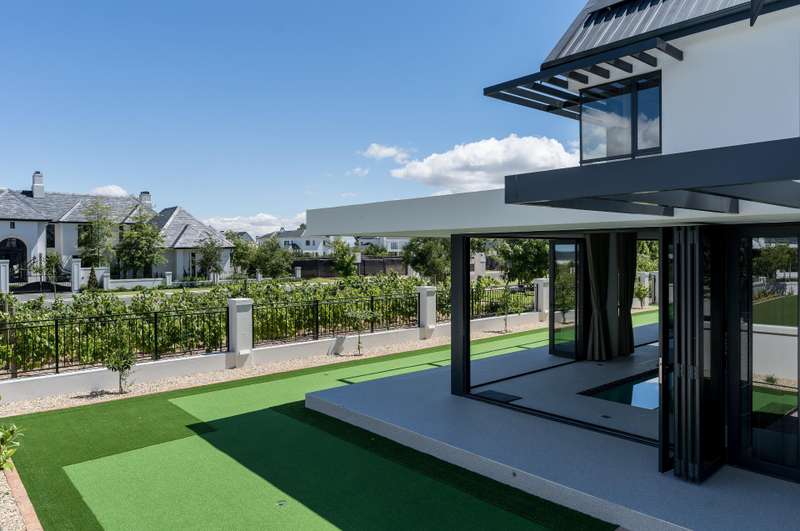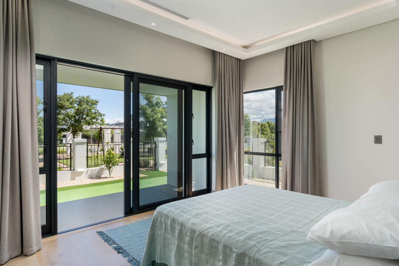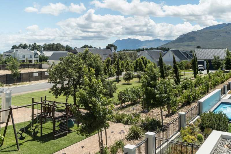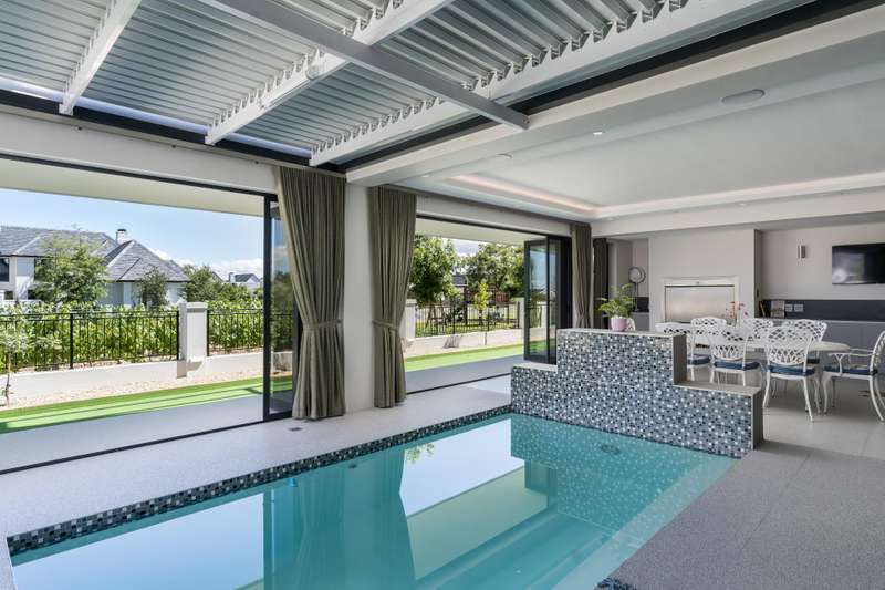 This new build features 4 bedrooms, 4.5 bathrooms, four garages, and a golf cart garage. Enjoy north-facing entertainment spaces with an indoor pool seamlessly connected to the well-designed kitchen, indoor braai area, and the comfort of ducted air conditioning. Three en-suite bedrooms are on the ground floor, while upstairs boasts a fully equipped en-suite bedroom, a full bathroom, and a versatile study area or office space. Additional features include a 24 KVA inverter, solar panels, and a loft room above the garage. Val de Vie amenities include 42km mountain bike routes, 21km jogging and walking trails alongside vineyards, Gyms, Tennis and squash courts, picnic spots next to the Berg River, world-famous Pearl Valley Jack Nicklaus Signature golf course, stables, parks and paddocks are surrounded by 360-degree panoramic views. Outstanding restaurants, a coffee roastery, deli and wine cellar satiate even the most discerning palate.