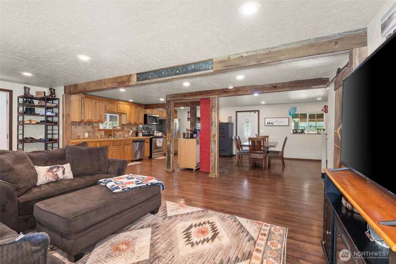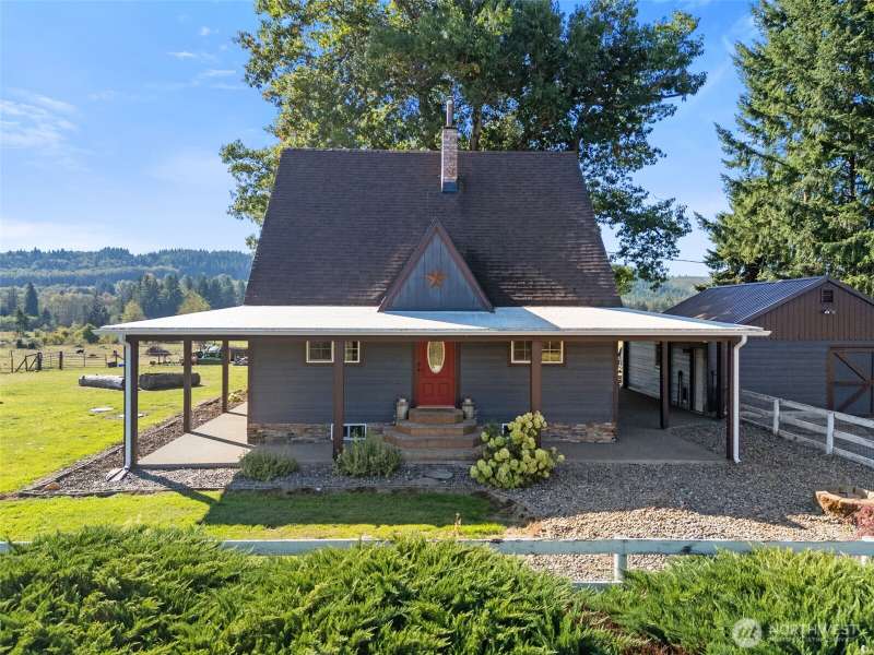 Don’t miss this charming farmhouse on nearly 5 acres, blending comfort, function, and country living. Offering 2,072 sq. ft. of open-concept space, the main level features inviting living areas and a fully finished basement with 2 bedrooms and a bonus room—perfect for guests or hobbies. The entire upper level is a spacious primary suite, creating a private retreat. Recent updates include a new roof, a ductless heat pump with A/C, a new water heater, a 3-bedroom septic system in 2022, and brand new exterior paint. Enjoy the wrap-around covered porch, patio, 4-stall barn with hay shed, cross-fenced pastures, outdoor arena, and shop—plenty of space for animals, projects, and all your toys. Peaceful country setting with lots of room to grow.