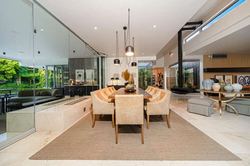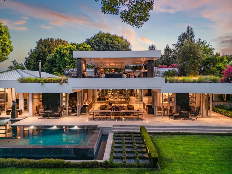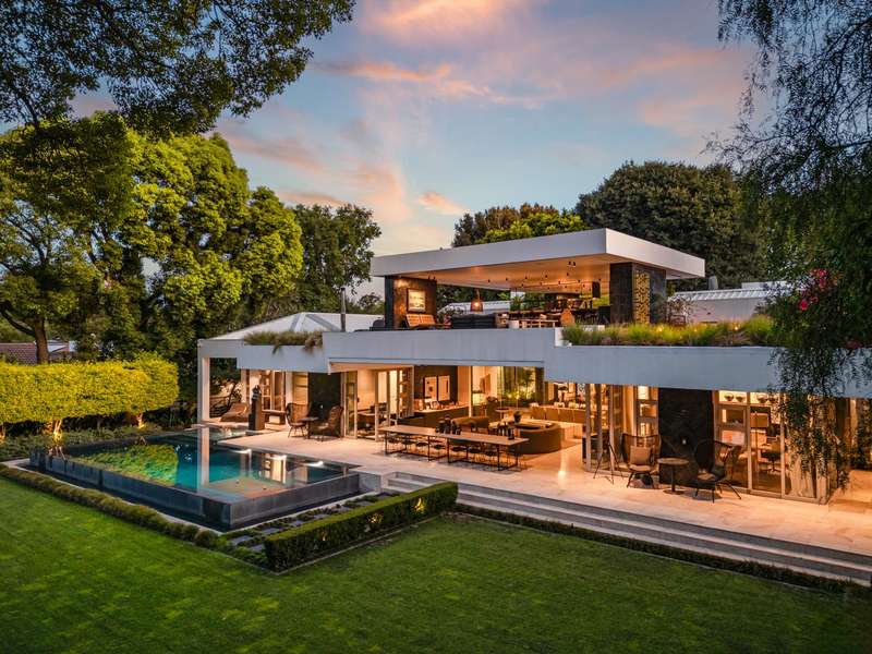 Discover a Villa in the heart of Illovo / Inanda. A one of a kind in every aspect from custom moveable furnishings, in the offering, plus custom sculptures to a unique lifestyle design. The masterpiece was created through the eyes of Dylan Thomaz who indulged in living on site to interpret his client?ÇÖs lifestyle choices as the visionary founder of Curacion Interior Architecture and Curacion Collection. The home contains furnishings designed for the home including unique collectors pieces.This home is 600m2 and hosts large gatherings enhanced by a cantilevered prestigious upper entertainment level with sky views. This protected property invites you into a double volume glass fa?ºade bridged by the tranquillity of whirling koi. The massive impact takes your eye through to transparent north and south external entertainment platforms. The connubial link between the huge lounge, dining and extraordinary kitchen with a walk-in cold room is beyond words. This entire area welcomes a suspended fireplace plus a double sided internal & external gas heating design. The office suite is custom fitted but has the option of a 4th suite. The main en suite fitted for all seasons has a full scale boutique style dressing room. The sumptuous bathroom has total transparency to its own private garden and external shower. Further accommodation includes a guest suite with a terrace and a large staff apartment positioned above the triple garages. The external covered entertainment areas are fitted with automated massive blinds. The external entertainment lounge, 16 seater dining, bar & fitted cooking/grill facility are in full view of the rim off pool and an exceptional garden. The distinctive skyline upper level is totally fitted for your every social whim including a pizza oven. Expect an experience of note on viewing! Offers will be considered from 19mil