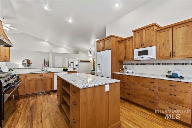 This well-kept Meridian home offers the perfect blend of comfort, space, and functionality. Sitting on nearly half an acre, it provides plenty of room to spread out—inside and out. The open main living area is filled with natural light and flows easily between the kitchen, dining, and living spaces, making it ideal for both relaxing nights in and casual gatherings. The kitchen features generous counter space, ample cabinetry, and a 6 burner plus griddle, Wolf range and copper hood—a favorite for anyone who loves to cook. The primary suite offers a peaceful retreat with a private bath and large closet, while the additional bedrooms on the other side of the home offer privacy. Step outside and enjoy your own backyard retreat with established garden space, mature trees, and a covered patio perfect for evening BBQs or morning coffee. A heated shop offers room for projects, storage, or extra parking—an ideal setup for anyone who needs a little more space to work or play. Located just minutes from I-84, you’ll have quick access to downtown Boise, shopping, schools, and everything the Treasure Valley has to offer. This home combines elbow room, convenience, and comfort in one great package. Come see why it feels like home the moment you step inside.