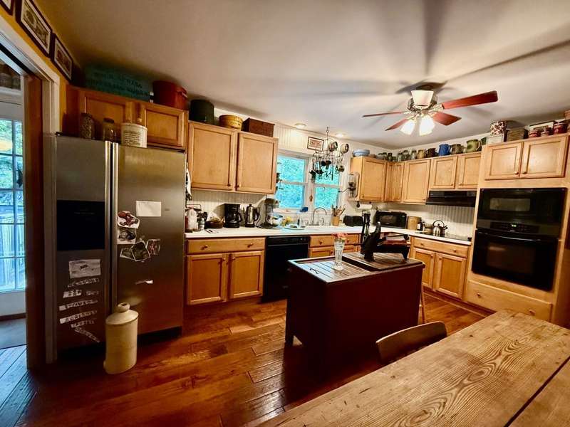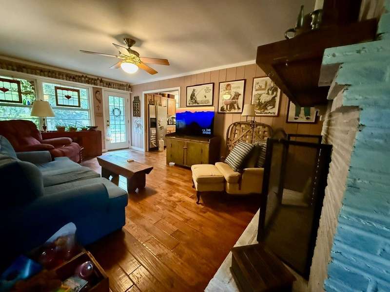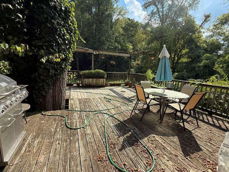 Gorgeous 1.49 flat acre lot that backs to trees and small creek far in the back. No flooding!. Feels very private in the backyard. Tear down and build your dream home or renovate because this home is very livable.