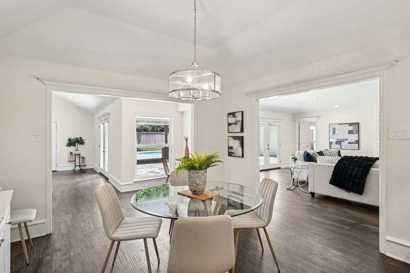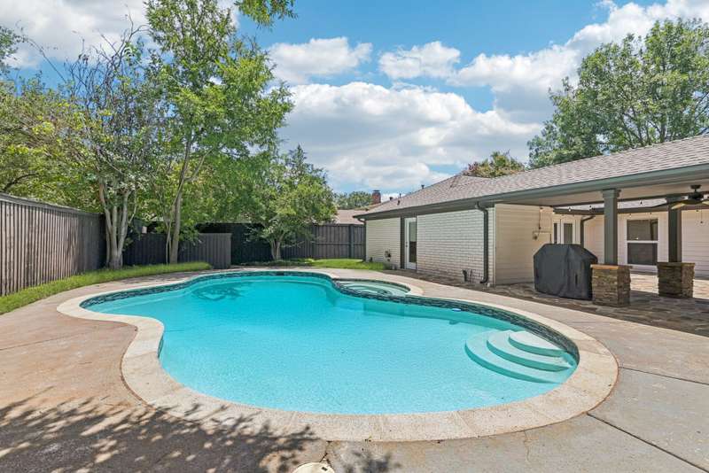 Great home for entertaining! Located in the heart of Preston Hollows Windsor Park, this exceptional one-story home has been beautifully updated and is truly move-in ready. Designed with comfort and style in mind, the floor plan features a split bedroom layout offering a private suite with its own bath and living areaideal for guests.The open-concept design flows effortlessly from indoor to outdoor living, with a C-shaped layout that surrounds the back patio. French doors fill the interiors with natural light and frame views of the sparkling pool, creating an inviting setting for entertaining or relaxing.Inside, youll find generous bedrooms, multiple living areas, a bonus room, and two dining areas. The gourmet kitchen has been tastefully updated with stainless steel appliances, custom cabinetry, and a coffee and wine bar. The fifth bedroom is currently staged as an office. Recent updates include a new PVC sewer line (replaced cast iron), a new driveway, and an updated pool. Every detail of this home blends elegance, function, and modern comfort, making it the perfect retreat in one of Dallass most desirable neighborhoods.