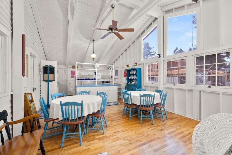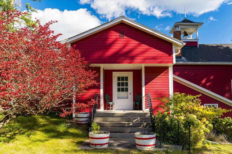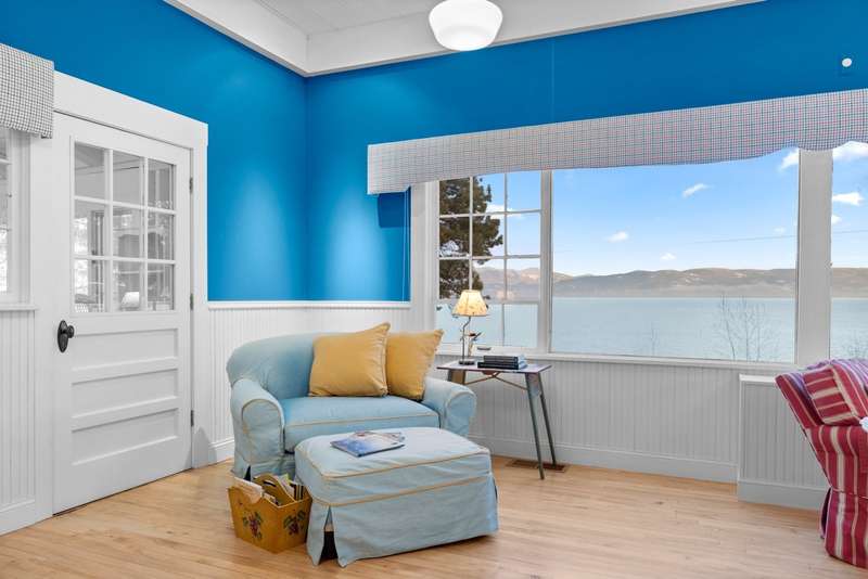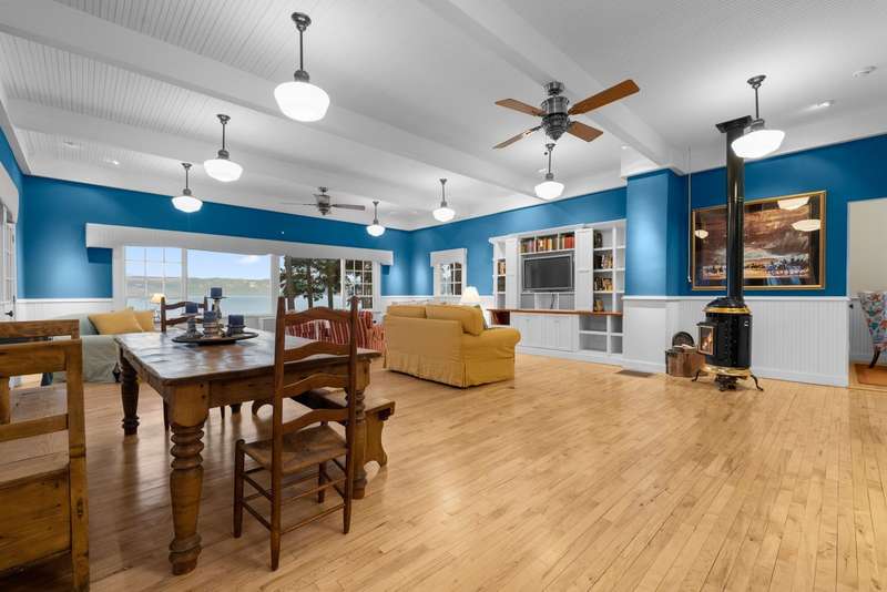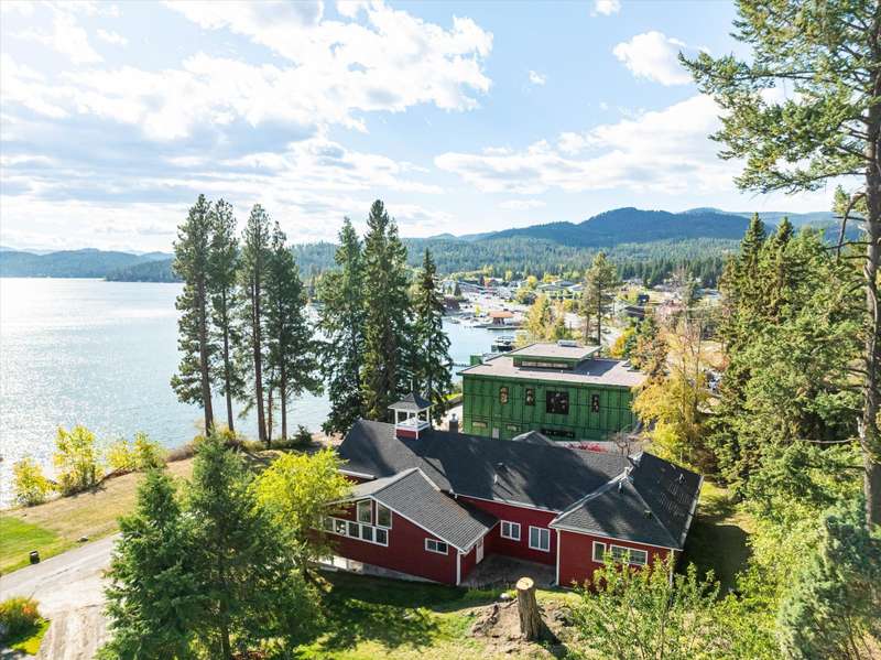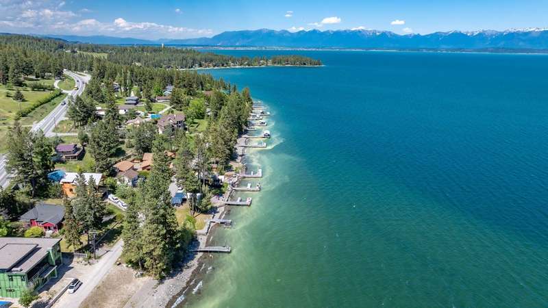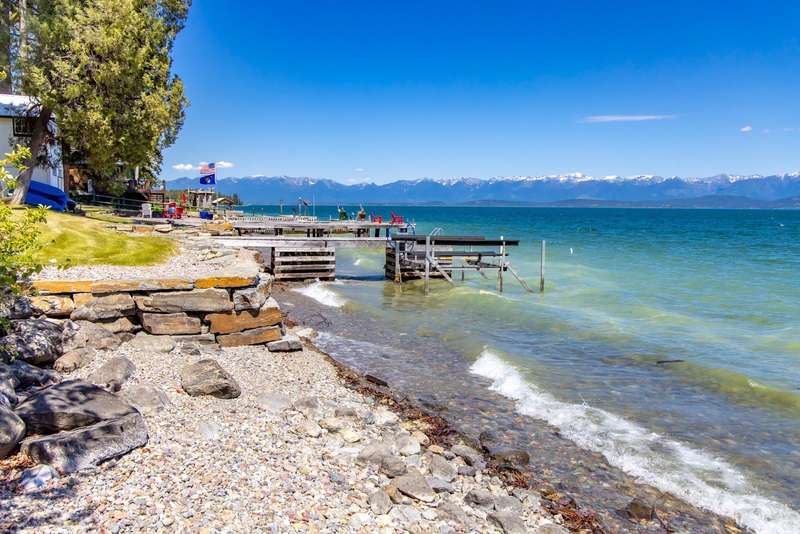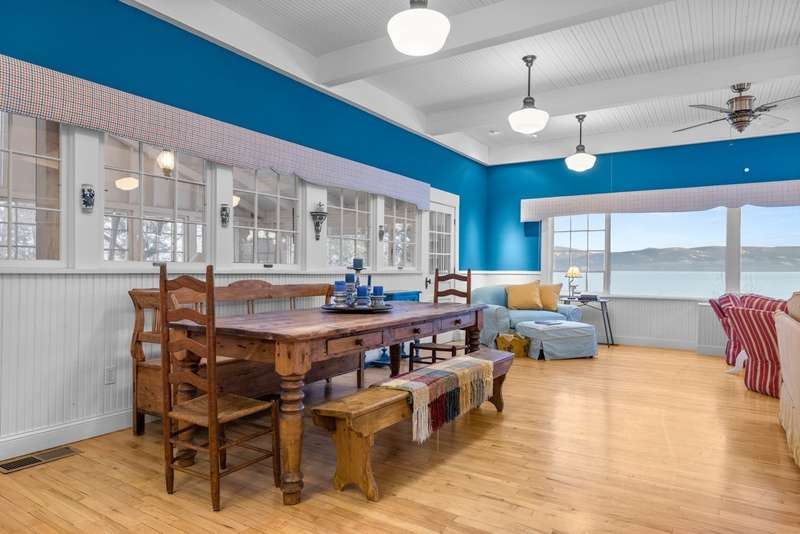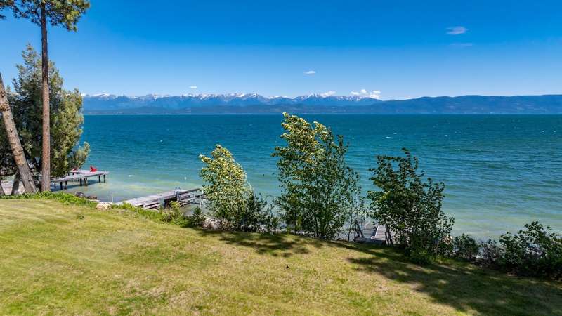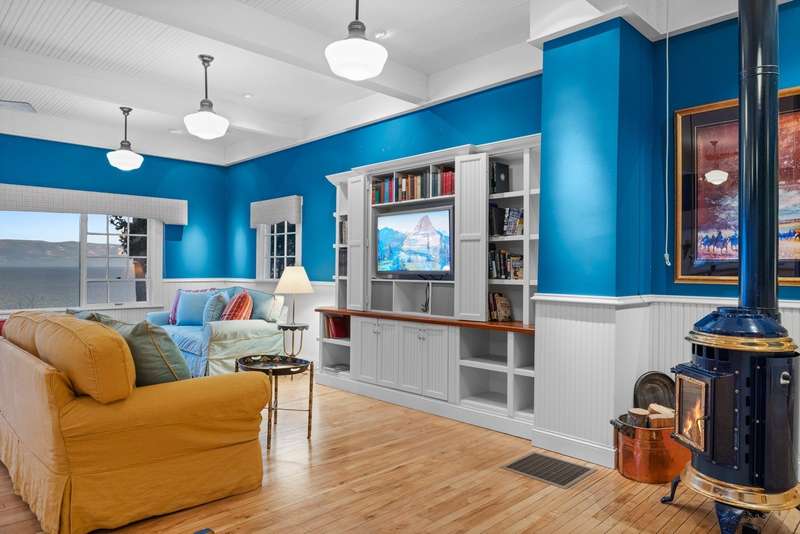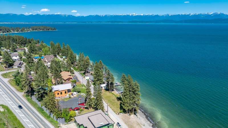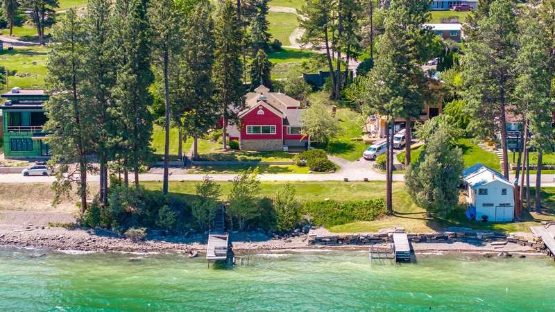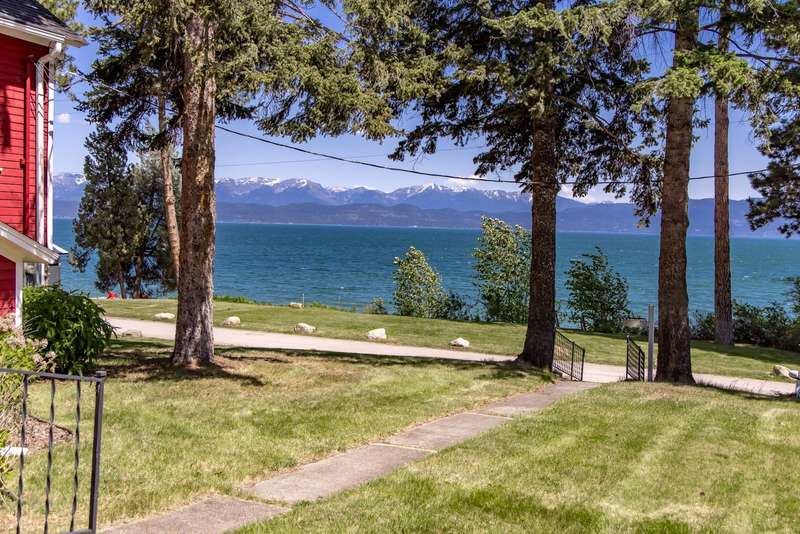 A historic icon of the Flathead Valley, the original Lakeside Red Schoolhouse sits proudly upon 108 feet of Flathead Lake shoreline. This beautifully restored lakefront home is reminiscent of an earlier era, with careful renovations conserving its classic charm. Originally built in 1906, the home was expanded in 1940 and throughout the 1960s, then fully remodeled in the 2000s with meticulous attention to every fine detail. This spacious residence encompasses 2,547 square feet with 10 ft ceilings and is complemented by an additional 570-square-foot enclosed summer porch with soaring vaulted ceilings and original windows. Its restored maple hardwood floors shine, as the open kitchen-to-living room layout flows into sweeping views of Flathead Lake and the Swan Mountain Range. Period elements include transom and French pane windows, while cozy gas fireplaces in the living and sitting rooms enhance its nostalgic ambiance. This unique property blends timeless history with lakefront luxury, a rare opportunity to own a piece of the past on the shores of Flathead Lake.