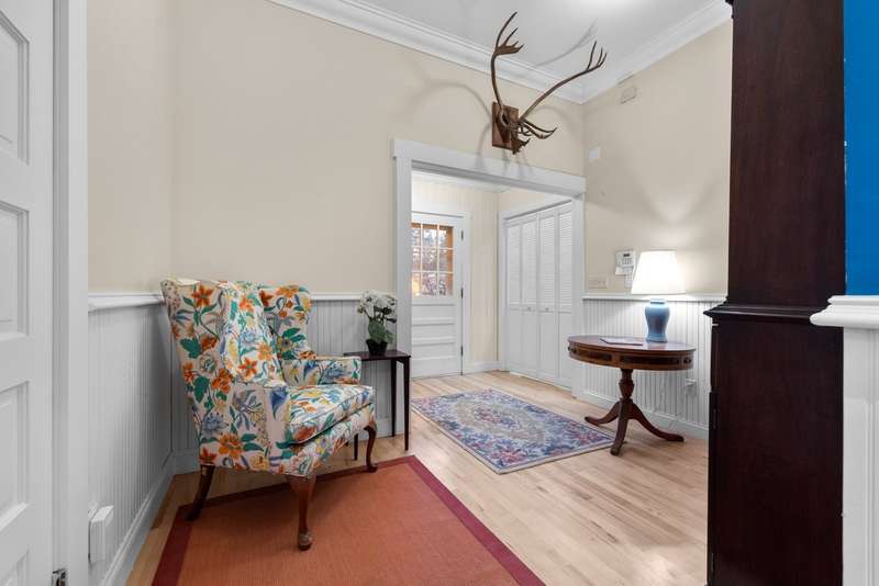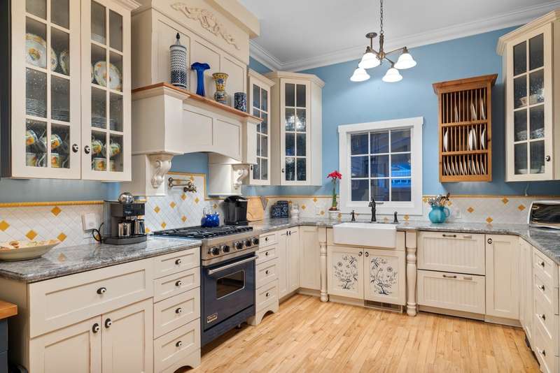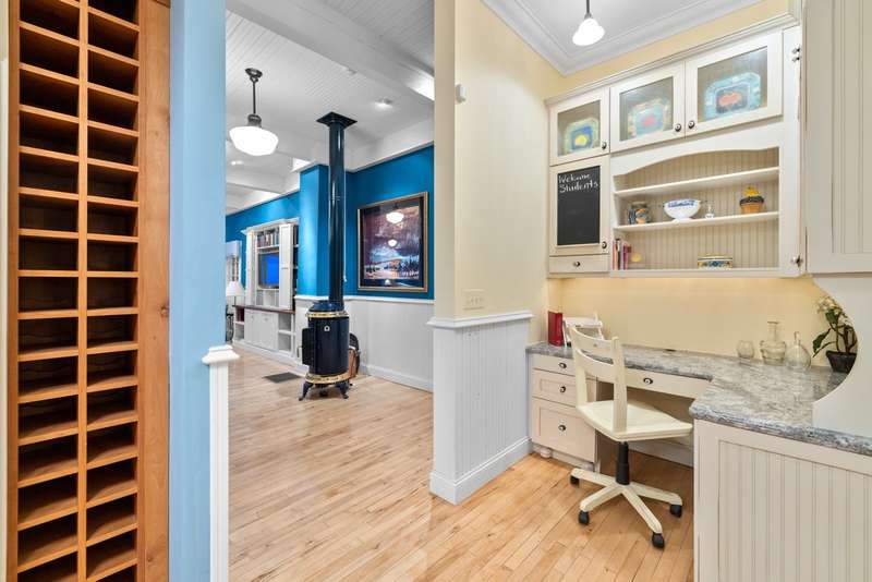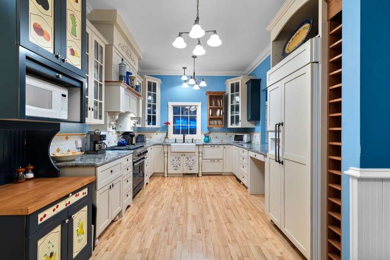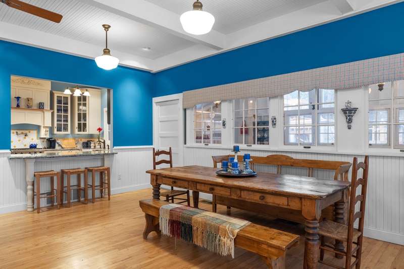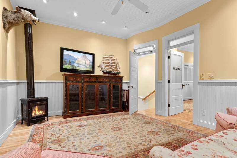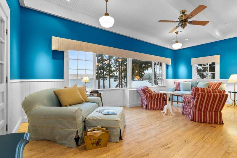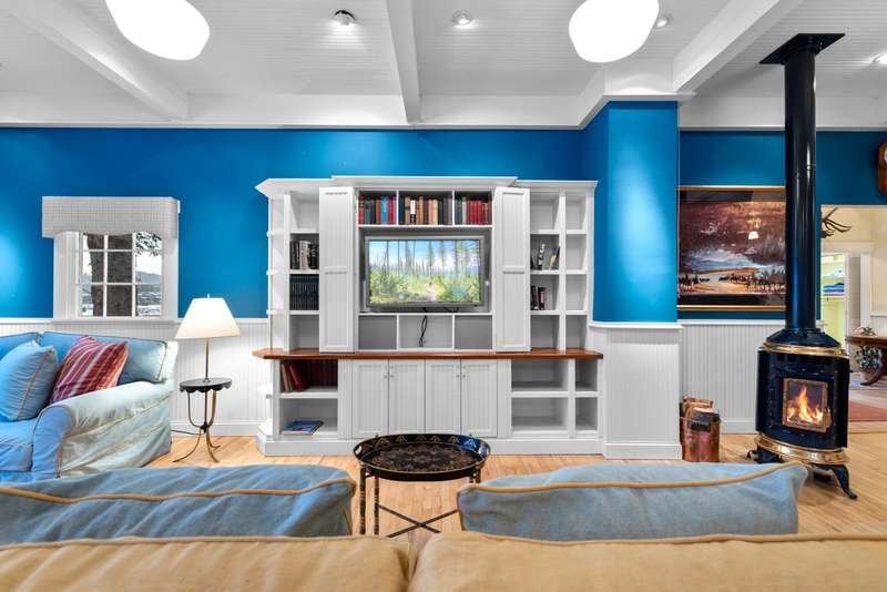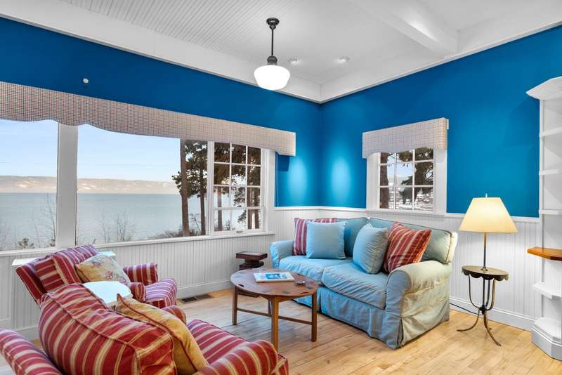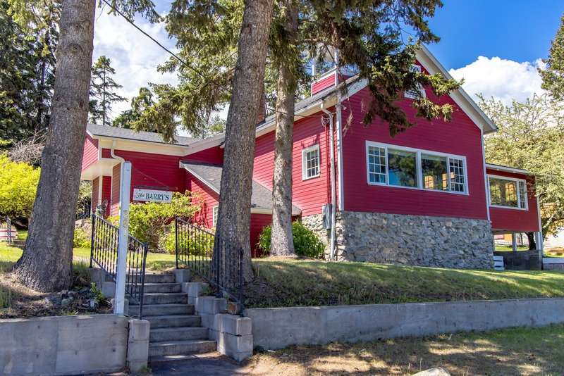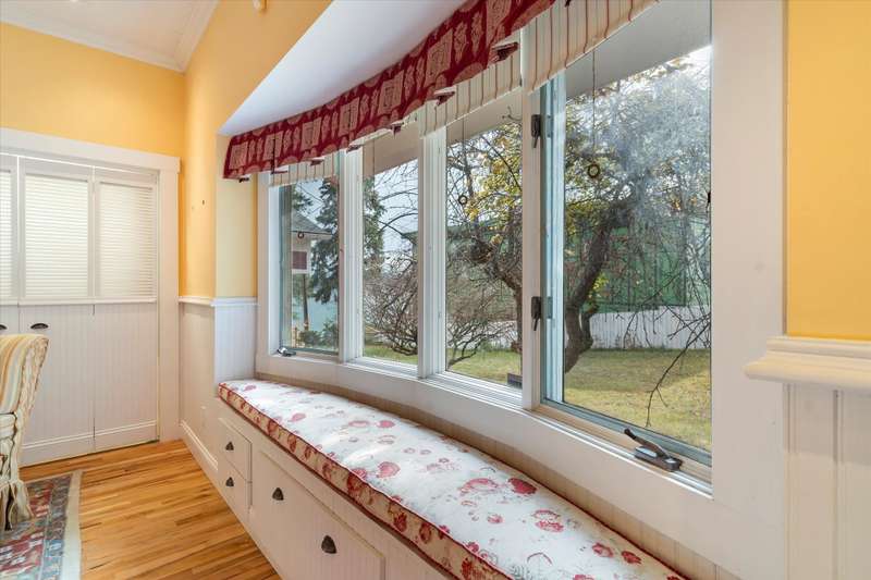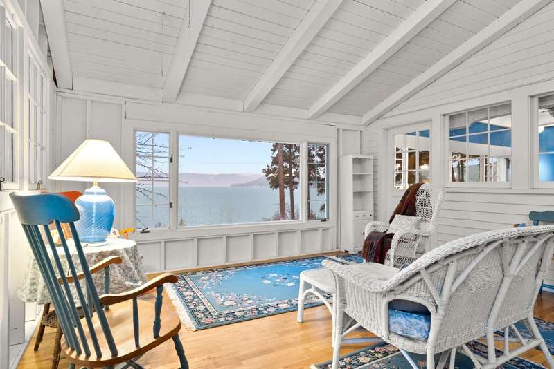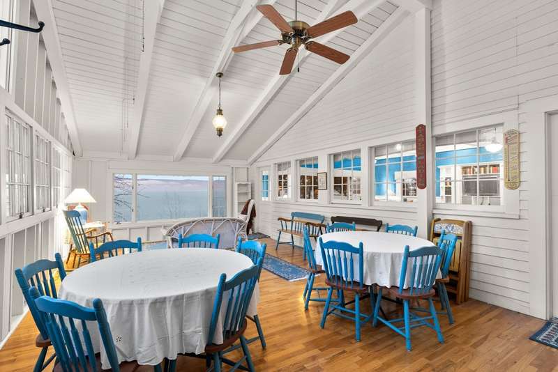 A historic icon of the Flathead Valley, the original Lakeside Red Schoolhouse sits proudly upon 108 feet of Flathead Lake shoreline. This beautifully restored lakefront home is reminiscent of an earlier era, with careful renovations conserving its classic charm. Originally built in 1906, the home was expanded in 1940 and throughout the 1960s, then fully remodeled in the 2000s with meticulous attention to every fine detail. This spacious residence encompasses 2,547 square feet with 10 ft ceilings and is complemented by an additional 570-square-foot enclosed summer porch with soaring vaulted ceilings and original windows. Its restored maple hardwood floors shine, as the open kitchen-to-living room layout flows into sweeping views of Flathead Lake and the Swan Mountain Range. Period elements include transom and French pane windows, while cozy gas fireplaces in the living and sitting rooms enhance its nostalgic ambiance. This unique property blends timeless history with lakefront luxury, a rare opportunity to own a piece of the past on the shores of Flathead Lake.