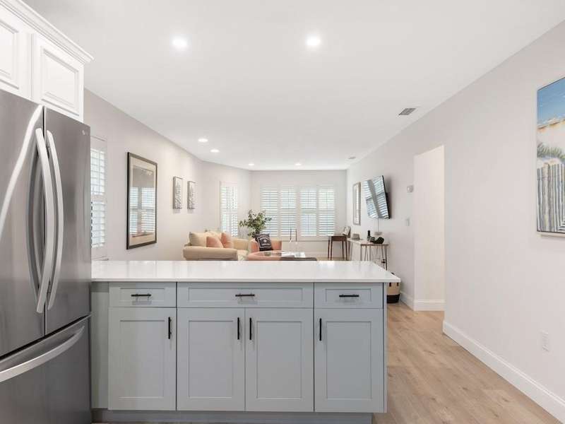 Nantucket inspired 2 bedroom, 2 bathroom, end unit East Of A1A. Featuring an open concept layout, quartz countertops, & SS appliances, it's the epitome of modern living. The artistically inspired ambiance complemented by beautiful oaks & an airy feel, makes it a haven for creativity. With impact windows adorned with plantation shutters, washer/dryer in unit, & a short stroll to Indian River County's finest beaches and incredible restaurants, convenience meets luxury effortlessly. Enjoy the refinished pool and central location. Take your bike to central beach or Riverside Park!