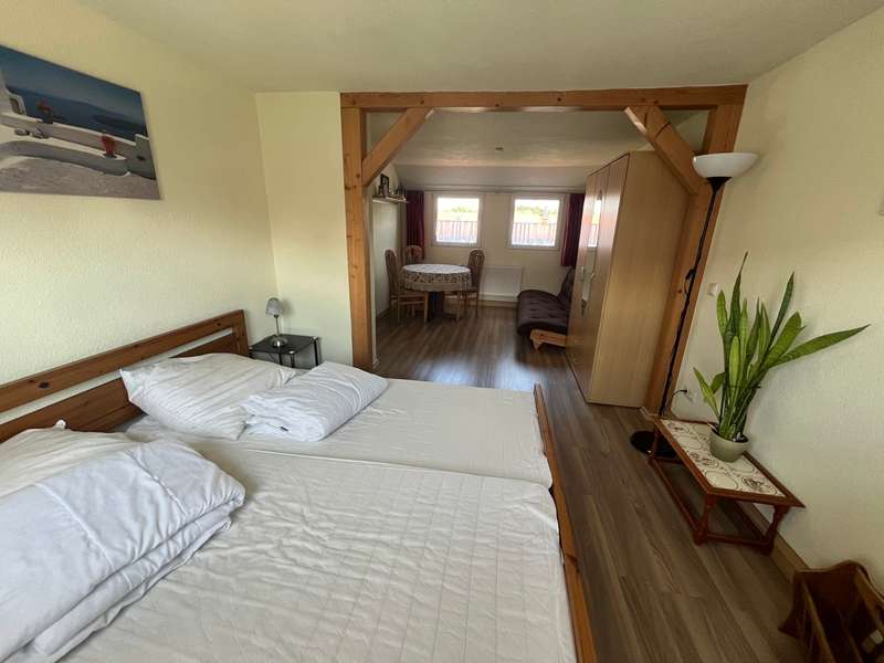 This mid-terrace house from 1932 offers approx. 90 m² of living space on a plot of approx. 230 m². The property was extensively renovated in 2012, with the exception of the roof, which was only half renovated. Previous use was as a vacation home. This could also be continued, although owner-occupation is of course also possible. The house is being sold with the entire inventory. On the first floor are the kitchen with fitted kitchen, the bathroom with bathtub and the living and dining area. From the kitchen you can access the sunny terrace and small garden, which invites you to relax and enjoy. The bathroom with shower and 2 bedrooms are located on the top floor. The full basement offers additional storage space and the attic rounds off the space on offer. Overall, the house is in a well-kept condition and is ideal for families looking for a modern home with charm and comfort.