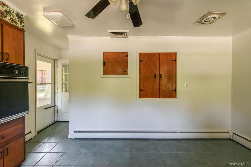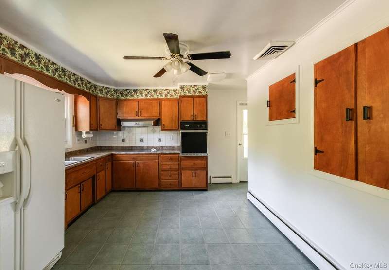 What a fantastic value! This home, offering three bedroom options, is a legal 2 bedroom, but has always lived as a three bedroom. You will be impressed with the size of the kitchen, its generous dine-in area, built-in pantry, solid wood cabinetry, ceramic tile flooring and a door to a cute side porch; a perfect place to enjoy a meal outdoors. The living room is cozy and bright, bathed in natural light streaming in through the wall of windows. Enjoy hardwood floors throughout the main level. As you head down to the lower level, discover loads of storage space as well as a finished recreation room with a door out to the driveway. The property is lovely. The house is set back from the road atop a gentle knoll, surrounded by a backdrop of mature trees. Enjoy tree-line views from the front porch or partake in a host of outdoor activities in the expansive, level backyard. Located in historic Hyde Park, close to shopping, eateries, the Poughkeepsie train station, major highways, hospitals, the Culinary Institute of America, Marist College, Vassar College and all that the fabulous Hudson Valley has to offer.