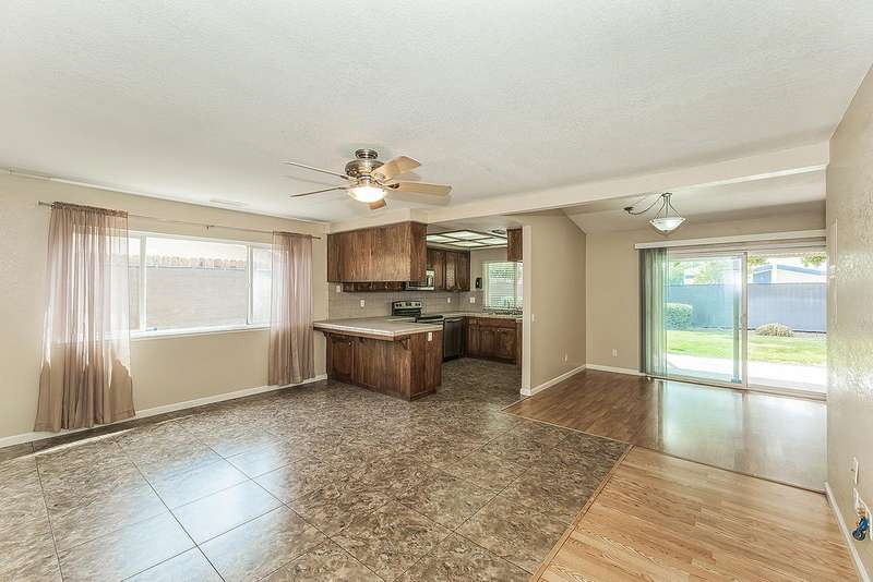 This charming 4-bedroom, 2-bath home sits in a peaceful cul-de-sac and offers an open, functional layout. The kitchen with a breakfast bar flows seamlessly into the dining room; perfect for casual meals or entertaining.Enjoy easy-care laminate flooring, ceiling fans in every room, and dual-pane windows for comfort and efficiency. Major updates include a new AC and roof in 2013 and a water heater replaced in 2023, giving you peace of mind for years to come.Step outside to a large covered patio, expansive backyard, and wide side yards with potential boat parking; offering plenty of space to play, garden, or relax year-round.Conveniently located near shopping, grocery stores, Costco, and neighborhood parks, this home combines comfort, updates, and a great location all in one!