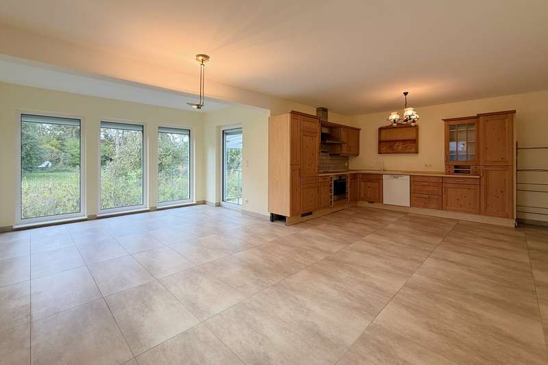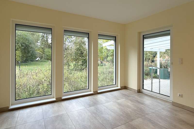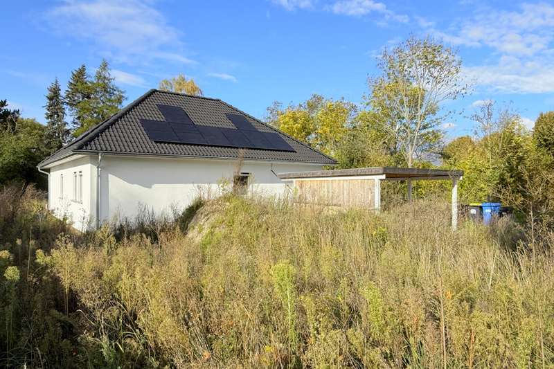 This corner bungalow from 2022 combines contemporary architecture, energy-efficient fittings and a well thought-out room concept on one level - ideal for couples, small families or senior citizens who want to live comfortably and with minimal barriers. With a living space of approx. 90 m², the house presents itself as a new alternative to the classic new build - ready for immediate occupancy, modern and easy to maintain. The first floor impresses with its clear structure and light-flooded atmosphere. The spacious living and dining area with open-plan kitchen forms the heart of the house - where modern design meets homely comfort. Large windows let in plenty of natural light and open up views of the greenery. The bright bedroom invites you to relax, while the other room can be used flexibly as a guest room, study or hobby room. The stylish bathroom offers maximum comfort with a bathtub and walk-in shower and is also designed to be barrier-free. Thanks to the convertible attic, the available space can be easily extended if required. The bungalow is also technically impressive across the board. An air heat pump, underfloor heating and a photovoltaic system with 5.1 kWp and energy storage with 4.6 kWh ensure a sustainable, efficient energy supply. Combined with triple glazing, full thermal insulation and an A+ energy efficiency rating, the result is a modern home that combines low operating costs with a high level of living comfort. This means that the bungalow is not only ecologically but also economically future-proof. The approx. 576 m² plot is fully enclosed and offers plenty of privacy. Paved paths, a high-quality carport with wallbox and a covered terrace underline the upscale overall impression. The garden still offers scope for creative design - whether a flowering oasis, low-maintenance green space or vegetable garden, personal ideas can easily be realized here. This as-new corner bungalow combines modern construction quality, energy efficiency and ground-floor living in a harmonious home. A retreat that offers comfort, style and future security in equal measure.
