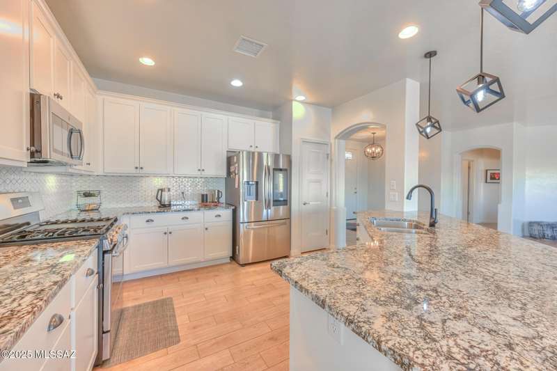 Breathtaking mountain views from every corner! This incredible 3BD/2BA, 1,834 sq. ft. home in the scenic Kings Ranch offers classic Arizona elegance and comfort. The beautifully landscaped front yard blends timeless stonework and easy-care desert charm. The open concept design is light and airy, with tall ceilings, stylish flooring, and plenty of space for living, dining, and entertaining. The kitchen is a showstopper with white cabinetry, sleek granite, stainless steel appliances, and a breakfast bar. The primary suite features a walk-in closet and a luxurious bath with dual vanities, separate shower, and garden tub. Guest rooms are generous with a full bath nearby. The three-car garage with epoxy floors is ideal for cars, toys or hobbies. Sunrises and sunsets are amazing from this home!