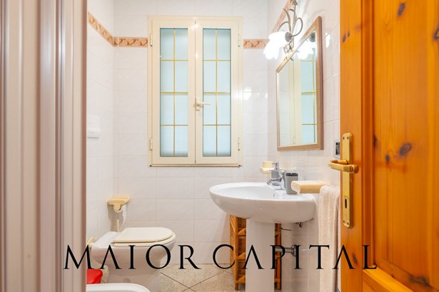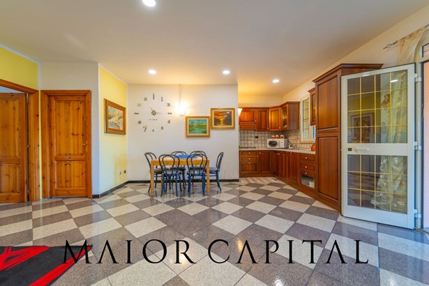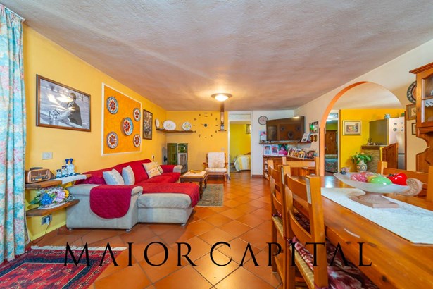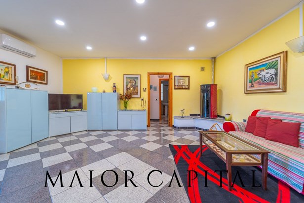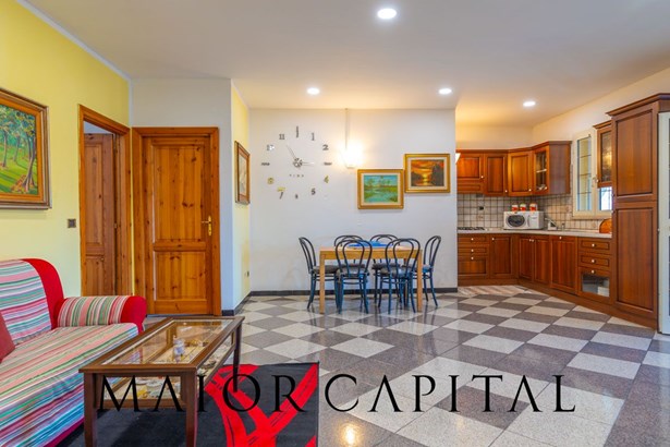 - On the semi-basement floor, with its own entrance, there is a practical living area with kitchenette, a large living room, two bedrooms and a bathroom. This configuration makes the floor ideal for guests, family members or as additional space for possible accommodation activity.