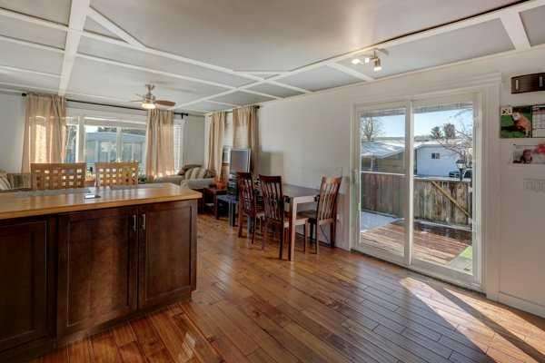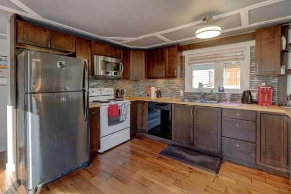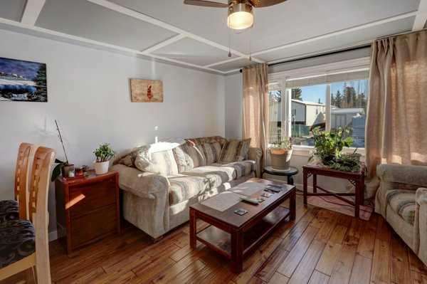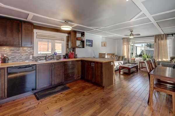 MOVE IN READY!!! Over 1200 sf in this newly updated open concept home. Starting with the outside... Upgraded Hardie Panel siding on the exterior, new peaked roof & shingles, 2 decks ( 1-front & one covered in the back), huge shed, new windows, parking for 3 cars AND RV parking in a secured lot on site. Drywall & new 4" Hickory Hardwood flooring, ceramic tiles in the entry way with a mirrored closet. Big modern kitchen with bamboo counter tops, tiled back splash, all appliances, wrap around eating bar with patio doors off the kitchen that lead to the front deck with plenty of room for a kitchen table. Living room is very large with many windows bringing in a ton of natural light. Primary bedroom easily fits a king & has 2 pce ensuite, 2nd bedroom is large with walk-in-closet & 3rd bedroom is perfect for a home office. Main bath has jacuzzi tub, separate shower, new vanity and still lots of room. Laundry room with washer / dryer also has storage. Mud room at the back of the home has a storage closet & leads you to the beautiful covered deck to be enjoyed year round! All newer fencing 7 lots of grass for kids and dogs. There are pet restrictions such as weight & breed but none relating to children and / or age of occupants. This is a family oriented park. RV parking is available on site for a normal fee. Includes a large shed and clubhouse use! Lease fee of $840 includes water, sewer, garbage pickup, snow removal, common maintenance, kids park and clubhouse use. Transit service is through the park as well as school bus service. With Bowness Park (boat rentals, picnic areas, skating in the winter and water access) right around the corner, the new Farmer's Market, Superstore, C.O.P (Skiing, snowboarding, tubing and go karting in the summer), easy access to Stoney Trail, 20 minutes to downtown and 50 to the Mountains, YOU'VE GOT IT ALL!
