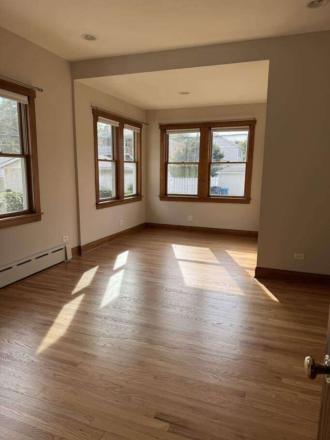 DOG FRIENDLY! NO SMOKING BUILDING. BEAUTIFUL, recently remodeled (Freshly Painted & Freshly Refinished Hardwood Floors). Enjoy the gleaming hardwood floors, and lots of natural lighting. Spacious, Semi-Private yard (secure for dogs), featuring: a Patio Set, Barbecue Grill, Fire Pit, and Garden. Walk to the Blue Line or various Pace Stops (giving access to Metra or Green Line). Free, shared laundry machines in the basement common area (available for use 24/7). Management lives on site. RENT INCLUDES: 1 Stall Garage Parking. Rent $2400, Security 1 mo rent, Pet Security Deposit is $650 per pet. Short walk to Shops, Nightlife, Parks, Pools, Tennis Courts, and Fitness Facilities. The landlord is looking for tenants whose monthly income (or combined monthly income) is three times the monthly rent (3 X $2400) and who have a credit score of 700. A Background Credit Check is required for every adult on lease. Proof of on-time rent for the past four months is required. Additionally, two outdoor parking pad spots are available for rent. We do not have a weight limit on dogs.