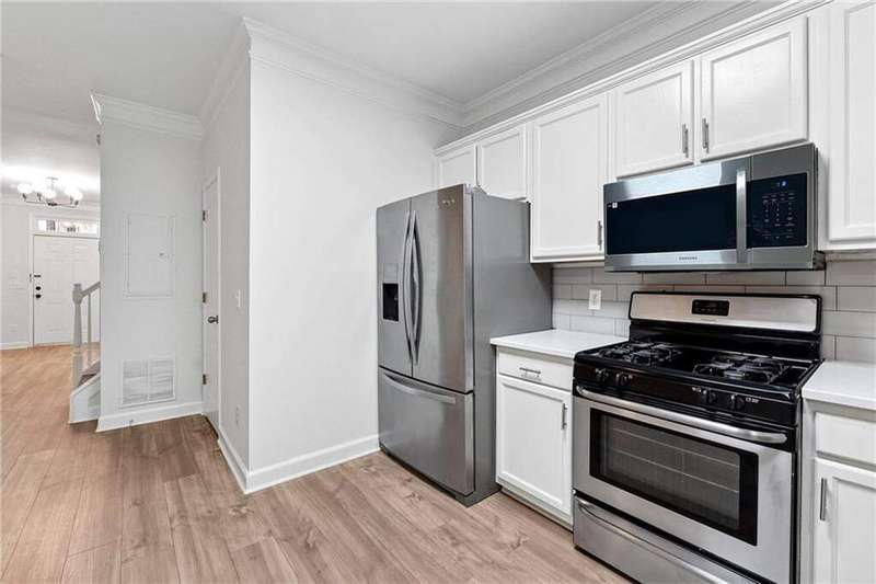 Beautiful townhome in a quiet neighborhood -just 5 minutes from Downtown Alpharetta, Avalon, and steps to Wills Park. The home has been painted throughout with all new LVP flooring added on both levels, all new lighting, brand new rood, new water heater and newer HVAC. The main level boasts an open-concept layout with a light-filled living and dining areas, a modern kitchen with white cabinetry, granite countertops, stainless steel appliances, and a convenient half bath. Off the kitchen you have a private, low maintenance backyard for relaxing and entertaining. On the upper level you will find 3 spacious bedrooms, including a primary suite with walk-in closet, and en-suite bath, and an additional full bathroom to accompany the two other bedrooms. Two assigned parking spots right outside the front door. Move in Ready and ready to call it Home!!!