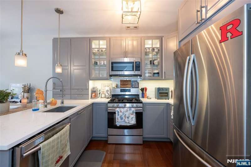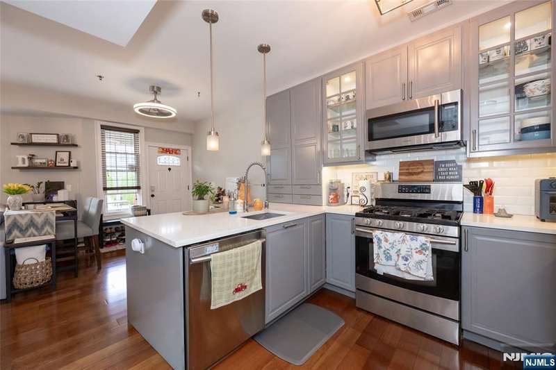 Beautifully updated move-in ready and pet friendly 2 bedroom 1 and a half bathroom 2-story townhome end unit in desirable Arlington Ridge! The 1st floor offers a spacious open concept feel with living/dining room and an updated kitchen! Down the hall you have a modern half bath and access to the one car garage currently modified to make for additional living space! The second floor offers two good sized bedrooms including the master suite with a large walk-in closet and a spacious full bath with a double vanity along with the washer/dryer in a hall closet! Close to revitalized Kearny downtown with shopping, parks and restaurants. Tons of visitor parking, easy access to PATH, Routes 3, 21, and 17, buses and schools! Maintenance fee includes water/sewer, garbage removal, snow removal, exterior maintenance and landscaping! Don't miss out on this incredible opportunity to own!