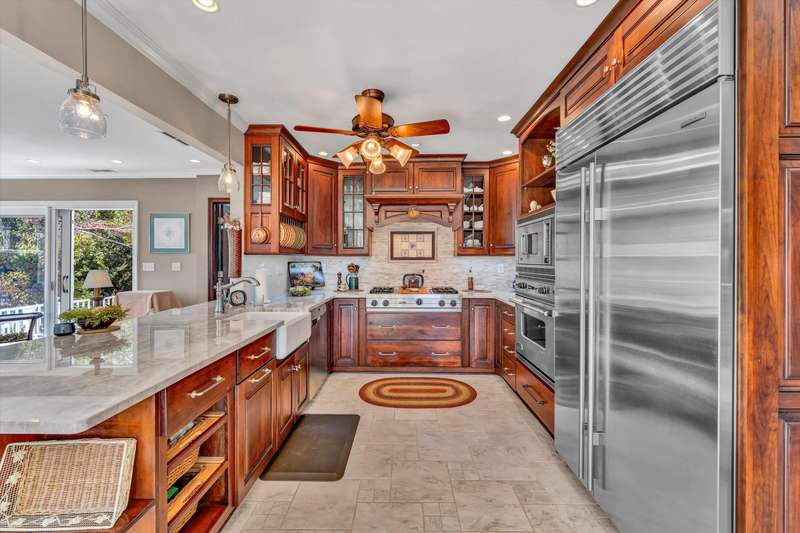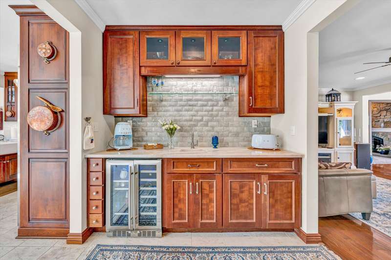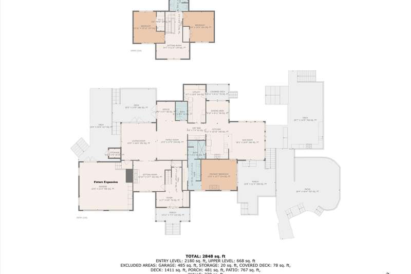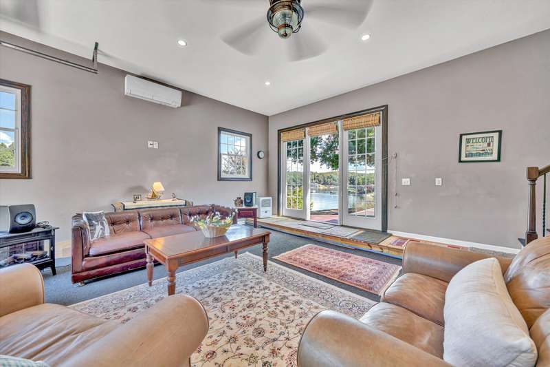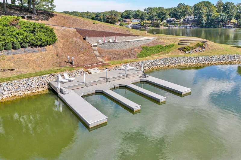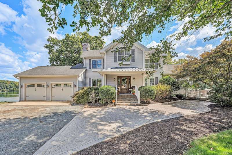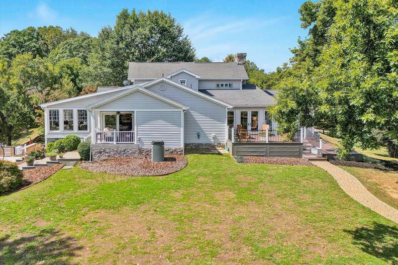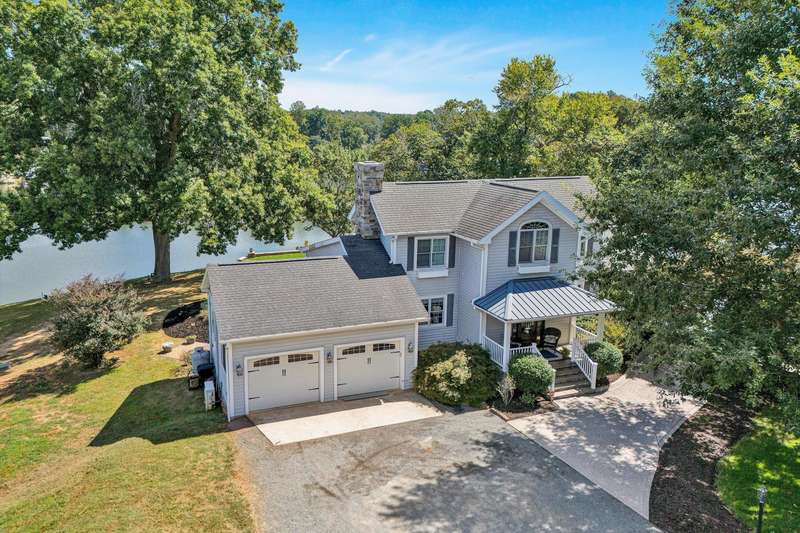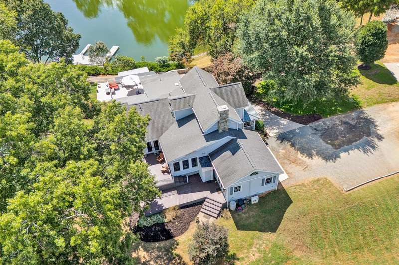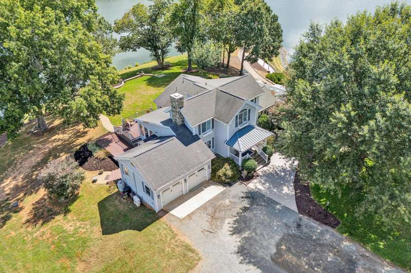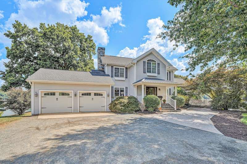 Located in a very private park like setting this 3BR 2 1/2 Bath Home (has a 4 bedroom septic and can easily have additions including the Flex Garage Space with plans available for another Primary Bedroom area and bath .Home provides relaxing living with resort amenities and sits on 2.72 Acres,700 ft of Lakefront with walking path along rip-rapped shoreline and 180 degrees view of Smith Mountain Lake. Home was originally established in 1900 and was torn down and rebuilt from the foundation up (concrete block) during 2004-2006. Numerous additions (professionally installed) after 2015 include all decks, stone-walk/patio areas, sand beach, stone walls, gated column entry and cabana/Cave. Waiting on AEP approval of Covered dock on existing dock for future expansion