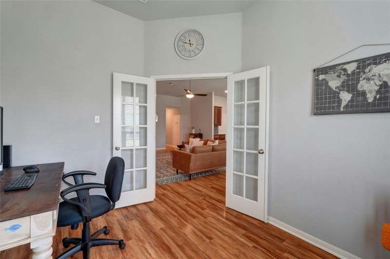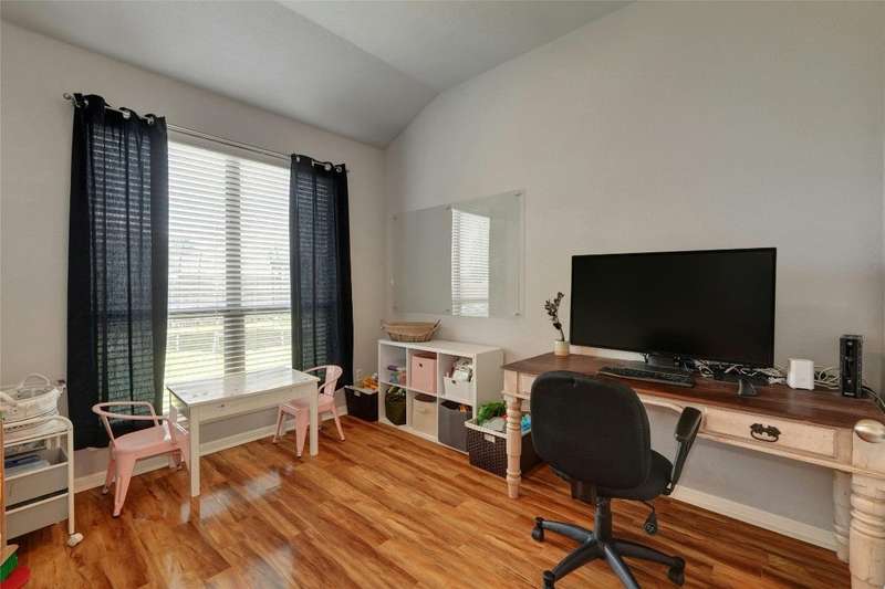 This charming single-story home features an open floor plan, perfect for modern living, and includes a dedicated office for all your work-from-home needs. Enjoy the community pool and park conveniently located at the street's end. Additionally, the home boasts a beautiful greenbelt and park directly across the street, offering serene views and outdoor recreation opportunities. The roof was replaced in 2022. AC was replaced in 2023.