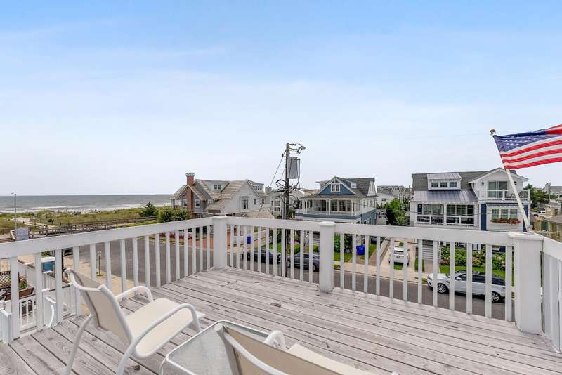 Location! Location! Location! Hear Ocean Roar and feel cooler breezes! This 5 bedroom, 3 ½ Bath Three Story Home is located 3rd from the Beach with spectacular views of the Beach, Ocean, Dolphins, Sunsets from the second and third floor decks, situated on a 50 x 110 lot with parking for 6 cars, and sheltered from Northeast winds. Enjoy walking & relaxing on the Boardwalk which is only steps away and walking to the center of the Business District for Shopping, Restaurants or Just Family Time Together. This property offers several options which include expansion of the home on the third level to capture wonderful views from a new family room with a wet bar and other amenities. One must see the property to fully understand the benefits of this Beach block location. Other features include a spacious first floor entrance foyer and family room with a wet bar, front deck, half bathroom and access to the rear yard from the rear deck. The rear yard also has an adequate area to install a swimming pool, cabana, and an attractive sitting area. The Second floor has a large living room with wood burning fireplace, cathedral ceiling and skylights along with access to the front deck, dining area off the living room and front deck, kitchen with tile floor and all appliances including a center island, sink and double storage space and cabinetry, television and tile flooring, two bedrooms, one full bathroom, hall utility closet and wall-to-wall carpeting. The Third floor has a large Master Bedroom off the front deck which has fantastic views, wall-to-wall carpeting, sitting area, large closet, large bathroom with tile floor, jacuzzi tub, double bowl vanity and shower. Property being sold furnished, less personal items (List of Exclusions will be provided).