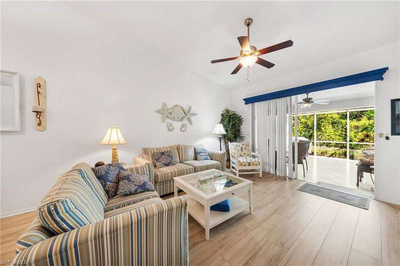 Discover a rare opportunity TURNKEY Updated Villa with 3 Beds, 2 Full Baths, 2 Car-Garage, nearly 1,500 Sq Ft of Living Space, Preserve View, in the highly sought-after gated community of Mandalay at Naples, where LOW HOA fees and an unbeatable Naples location come together. Nestled just off Rattlesnake Hammock Road, this meticulously kept and FULLY FURNISHED attached villa places you moments from Santa Barbara Blvd, US-41, top-rated schools, endless dining and shopping options, and only 8 miles to the iconic Naples Pier. Step inside to an inviting and stylish living space featuring high ceilings, large windows, and elegant luxury plank vinyl flooring. The open-concept layout allows for effortless living and entertaining, with a seamless flow from the kitchen complete with modern appliances, plentiful countertop space, and breakfast bar - into the dining and living areas. Enjoy tranquil wooded views from the enclosed lanai, offering oversized covered space to relax and unwind year-round, plus direct backyard access for added convenience and privacy. The spacious primary suite serves as a private retreat, featuring large walk-in closets, dual vanities, and a luxurious walk-in shower. Two additional generously sized bedrooms offer flexibility for guests, a home office, or hobbies, and share a well-appointed full bathroom with tub/shower combo and ample storage. Rest easy with major updates already completed, including a roof install in 2020, AC from 2017, and hot water heater from 2020. Additional highlights include an attached two-car garage, in-residence laundry, and abundant storage throughout for peace of mind. Mandalay residents enjoy a sparkling community pool, spa, and cabana all within a private, gated setting and close to Naples' best beaches, dining, entertainment, and recreation. This special villa offers comfort, convenience, and peace of mind in one of the area's most desirable locations, an exceptional opportunity that won't last.