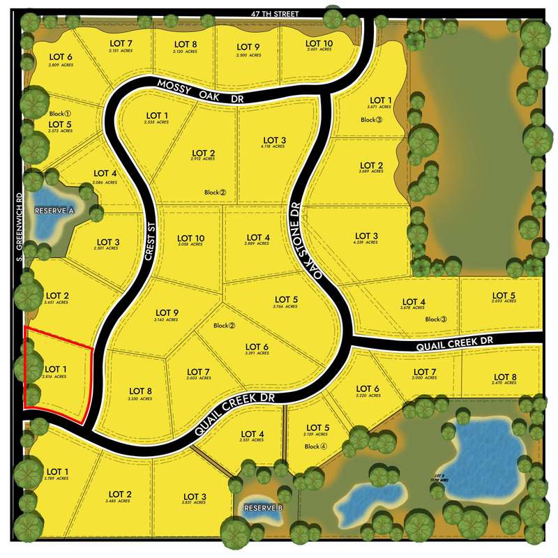 Welcome to The Estates at Wandering Oaks, an exquisite new home development that offers a luxurious living experience, spacious acreage lots, and a prime location just a stone's throw away from Wichita, Kansas. This master-planned community is designed to cater to those seeking the perfect blend of opulence, natural beauty, and convenient access to urban amenities. Reserve your lot today!!!