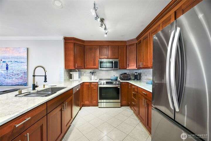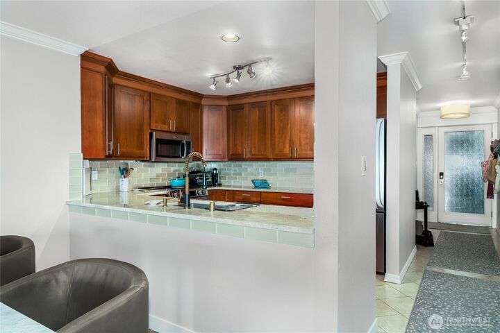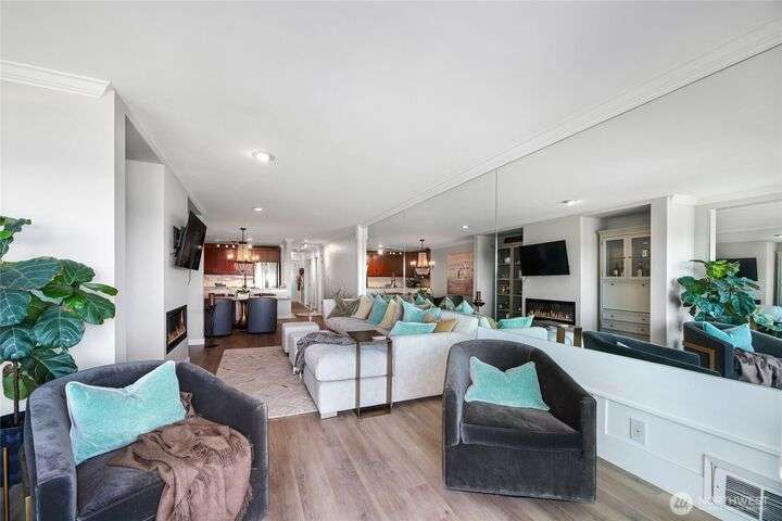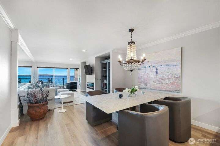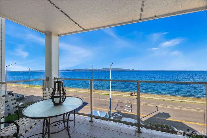 Sweeping wireless view of Puget Sound and Olympic Mtns at the quiet end of beautiful Alki Beach. Watch whales, boats and winter storms, enjoy sunny days and beautiful sunsets on the covered deck, walk for miles, bike or kayak along the shore. Alki is a close knit community you will love to call home! Bayshore Condominium is a building with 25 units and has had recent building improvements: Roof replaced in 2020 decks and walkways resurfaced in 2023 (no pending special assessments) and #304 has had nearly $60K of recent upgrades. This elegant home is ADA accommodating with wide halls and doorways, low threshhold shower and maneuvering space in primary bath, laundry off hall and roomy kitchen. Gated garage and secure lobby entrance.