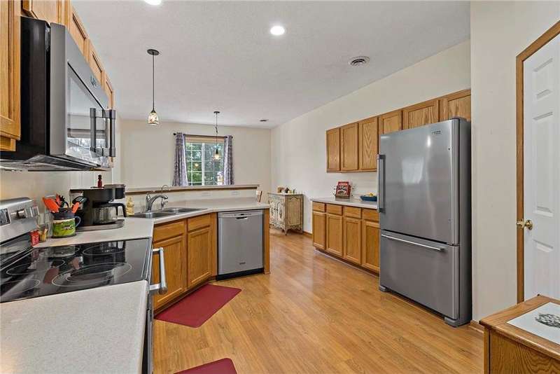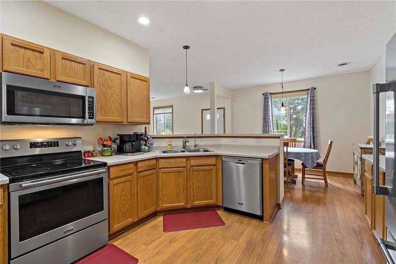 Welcome Home! This is an AMAZING end unit townhome in Maple Grove! 2 Bedrooms and a LOFT, 2 Baths, and a 2 car garage. The view is great! Lots of green space to have some privacy. Lovely pond area and mature trees with East and South facing views to enjoy a cup of coffee/tea in the morning, growing herbs and having some plants….all the way into the evening to relax and unwind. The main level has lots of room with the open concept of your Living room, Dining area and Kitchen. Warm up next to the gas fireplace, in the living room when you’re having everyone over or the football season. Or just a quiet dinner in the Dining room with south facing windows for lots of natural light. The Large Kitchen has Stainless Steel Appliances, a lot of countertops and cabinets, with an awesome walk in pantry. There is a ½ bath on the main level too. Then upstairs has a wide hallway going to 2 Bedrooms, a full bathroom and a LOFT/Family room area. Don’t forget about the upper level laundry room and mechanical room. Mr. Clean lives here, so everything has been meticulously maintained. Great Location in Maple Grove with Trails, restaurants, shopping and more close by! See this today!